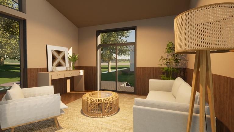 Devido a questões de privacidade as cabanas Buddha e Prana terão suas aberturas voltadas para o oeste, dessa foram necessários elementos arquitetônicos de proteção solar específicos para que fosse proporcionado conforto térmico para os hóspedes.