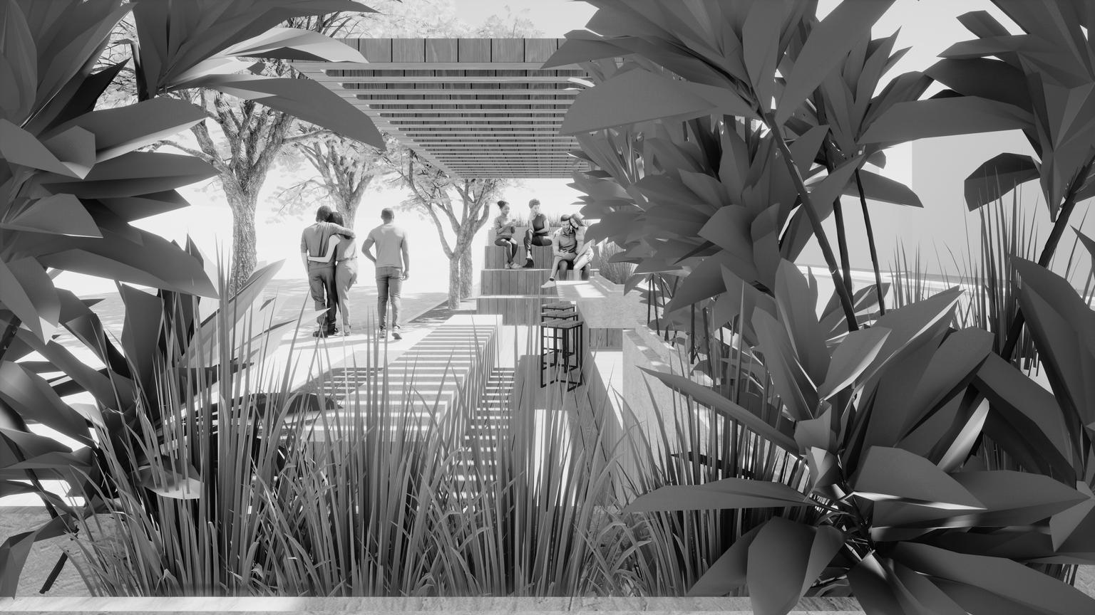 O projeto foi desenvolvido na Praça do Bonanza em Canoas-Rio Grande do Sul, em uma região de uso misto. Em um espaço de 2x10m foi implantado o parklet que ocupa algumas vagas de estacionamento que cercam a praça. Nele, além de uma arquibancada, há mesas, bancos, floreiras, pratileiras para armazenarmento de doações da comunidade e uma cobertura como recurso de proteção solar. Todos esses elementos foram pensados para servirem as pessoas que frequentam a praça, a escola localizada no outro da rua e o comércio da região.