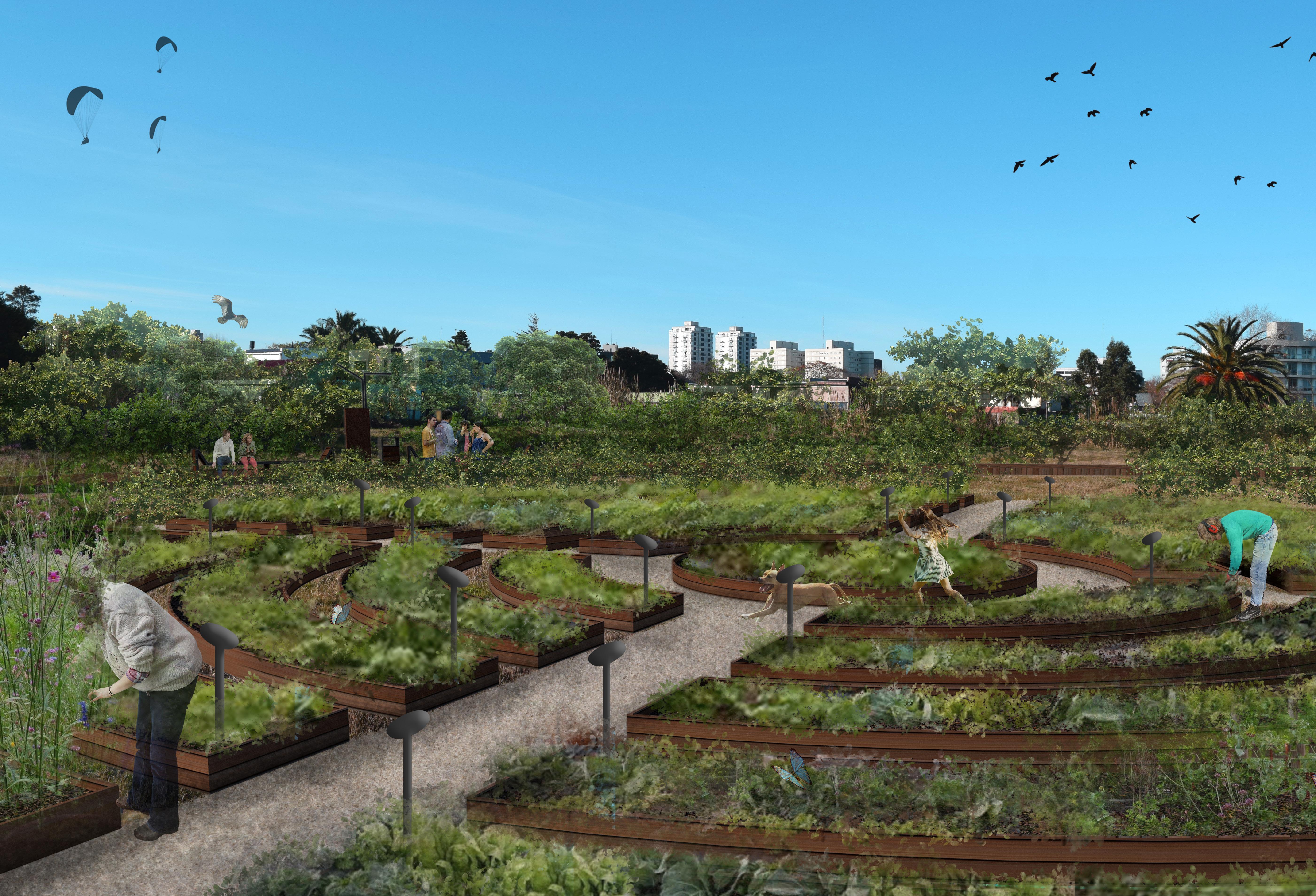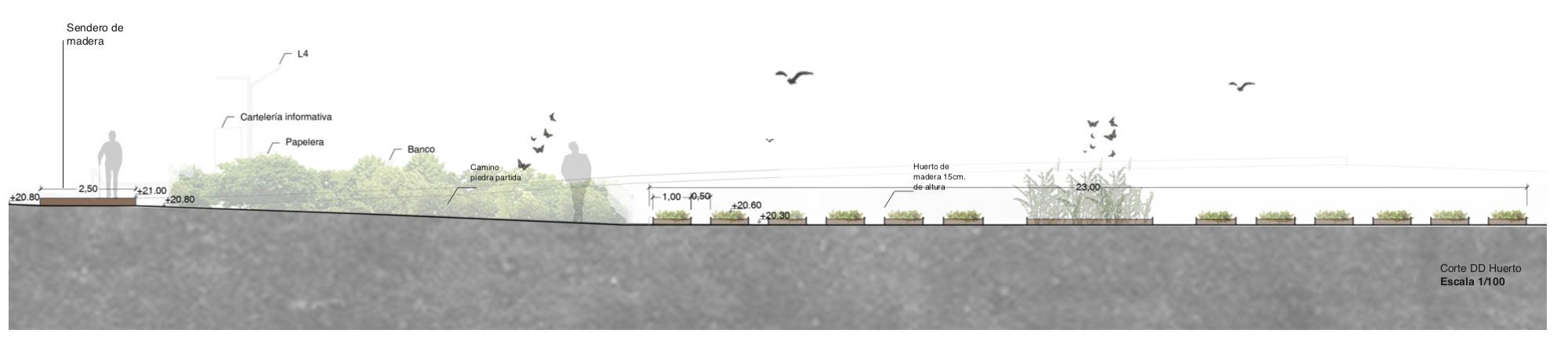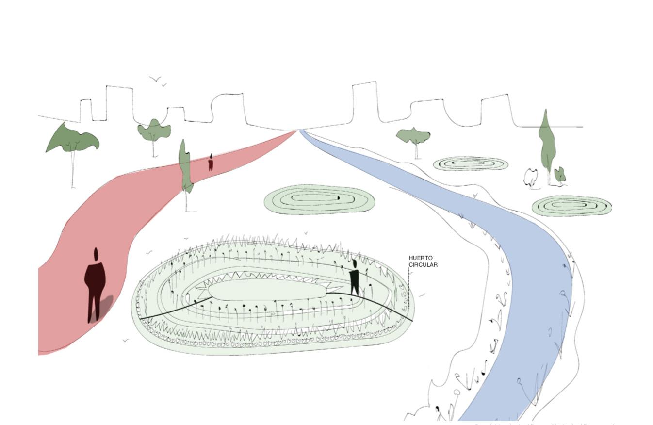 O projeto de hortas circulares está planejado para a apropriação de espaço no Descampado, constituindo uma estratégia para gerar sua própria fertilidade de solo, exigindo menos água, tendo a capacidade de reter mais umidade e água excedente, aumentar a produtividade e otimizar o uso de mão-de-obra comunitária. Estas são distribuídas em quatro hortas circulares para conseguir o fornecimento de alimentos e distribuir as