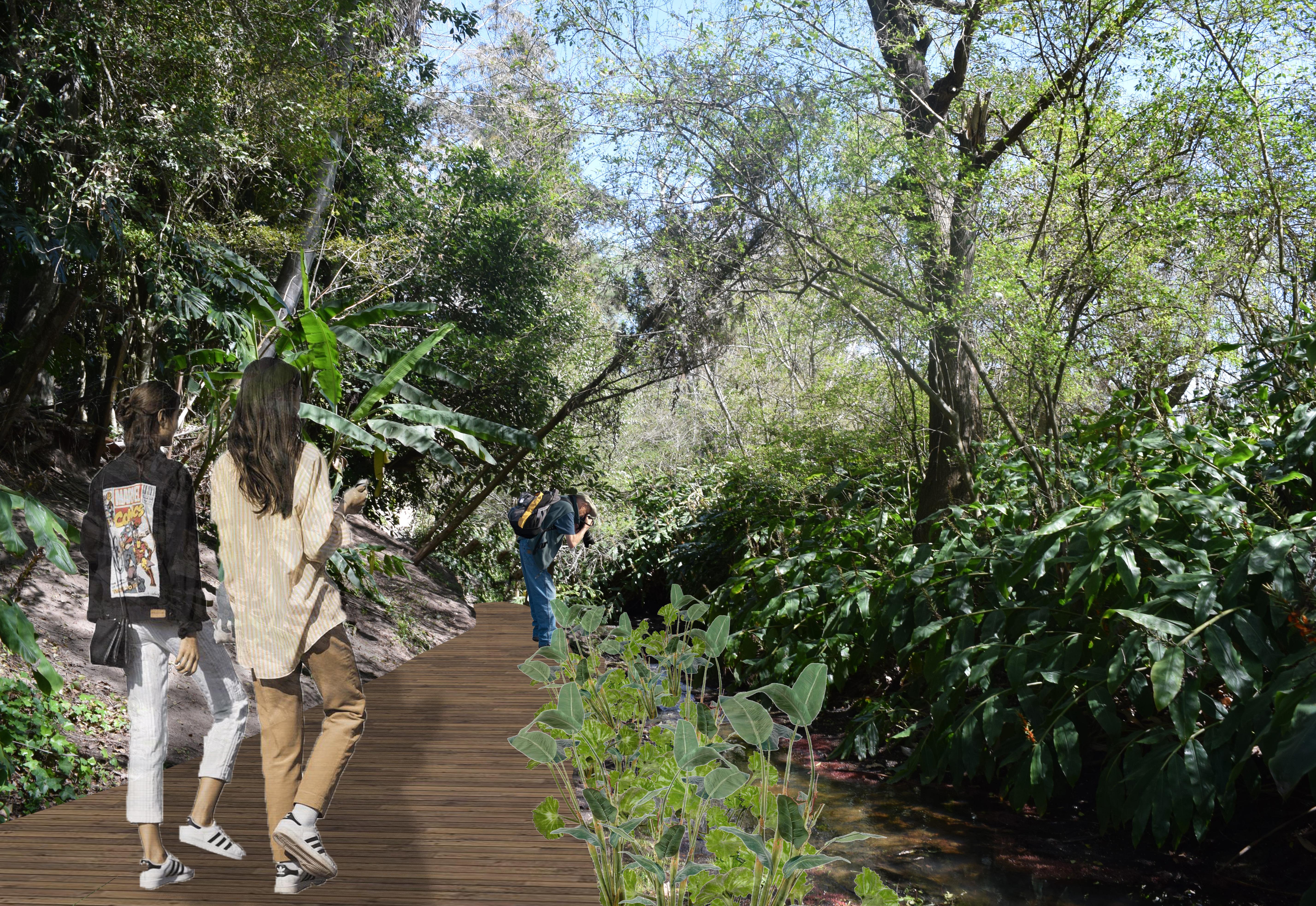 Na Floresta são realizadas atividades para contemplar o lugar de sua grande biodiversidade, onde você encontrará sinalização informativa de cada espécie histórica que foi incorporada pelos antigos vizinhos da área e também das espécies alimentícias, aromáticas e medicinais. O projeto da planta identifca espécies da mais baixa para a mais alta: árvores, arbustos, ervas, espontâneas e ervas daninhas.
