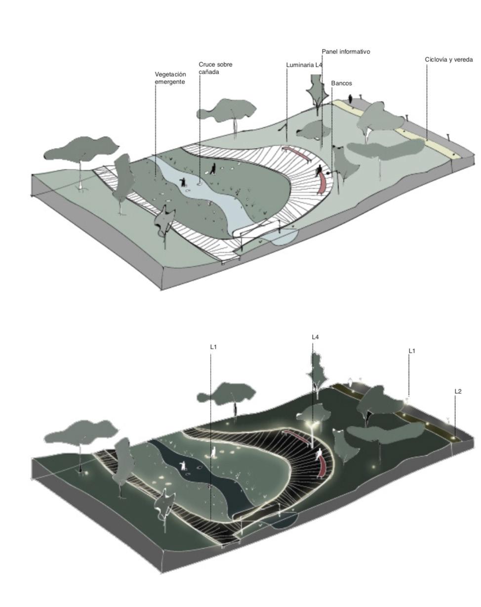 Este projeto tem como idéia central o conceito de espaço público e se concentra no projeto de um parque urbano em escala, no bairro Las Delicias, localizado na cidade de Maldonado. O objetivo é reavaliar as paisagens das ravinas urbanas, promovendo a melhoria da qualidade de vida dos habitantes e preservando a ravina por seus valores ecossistêmicos.
