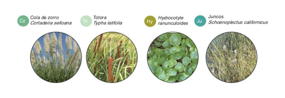 AGUA. A principal função das espécies propostas para esta unidade é fltrar a água. São espécies aquáticas emergentes, que serão responsáveis pela geração de um ecótono para o amortecimento das águas pluviais e dos re-