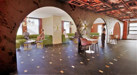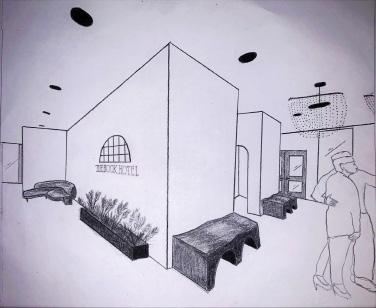1906, is the year the Book Building was built and since then the building has seen many people com through its doors. When I did my research, some documents mentioned the Book Building being home of the first ever saloon in San Antonio. I thought that was an extremley important part of the buildings history and decided to make it home to a bar and lounge, 1906. My inspiration for this space was to combine the basement level of the building with it’s courtyard to be a shared space. I imagined the bar having elements of a speakeasy and conveying that feeling of mischief and being in a place where it truly is about having a good time. The courtyard has spaces for groups to join, as well as more intimate seating arrangements surrounding the stage where live acts can perform or where events can be held. The courtyard connects directly to the Riverwalk and leads you up to Houston St. as well , where the lobby and Cafe Coucou are located so anyone coming in from the River has easy access to the building.