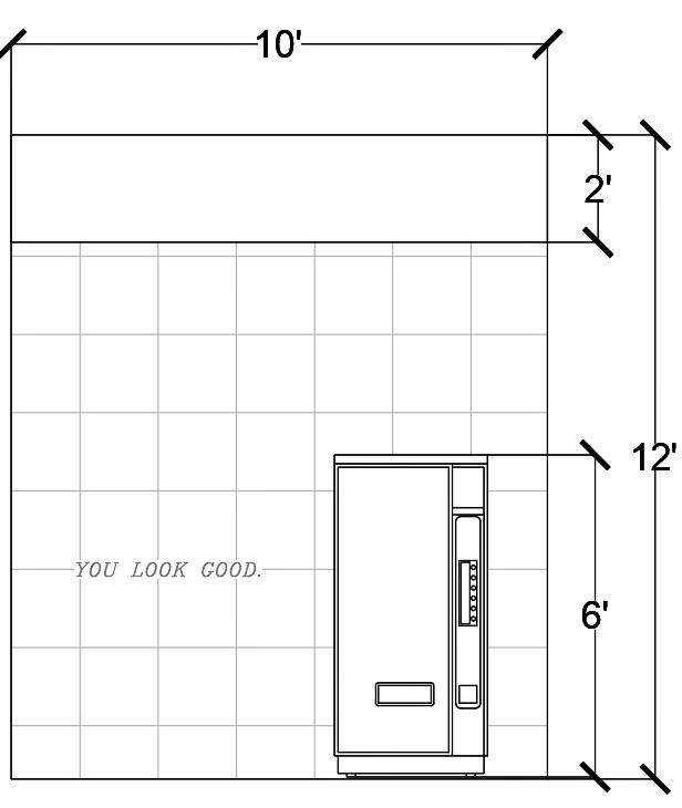 On the opposite side of the kiosk from the colorful panels, we decided to add a vending machine into a mirrored wall with a decal that says “YOU LOOK GOOD” as it is the company’s signutare mark to write uplifiting phrases on their mirrors. The vending machine contains easy and 24/7 access to their products and adds a fun element to a shopping experience.