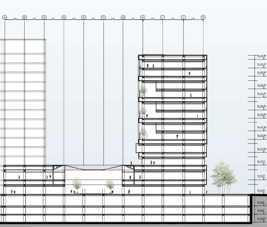 Fue un reto el paso de las tuberias y ductos por todos los niveles para hacer el diseño lo más eficiente posible ya que debido a la variación en distribución de las plantas secomplicaba que coincidieran las instalaciones con la funcionalidad de cada nivel. Sin embargo se utilizaron niveles intermedios.