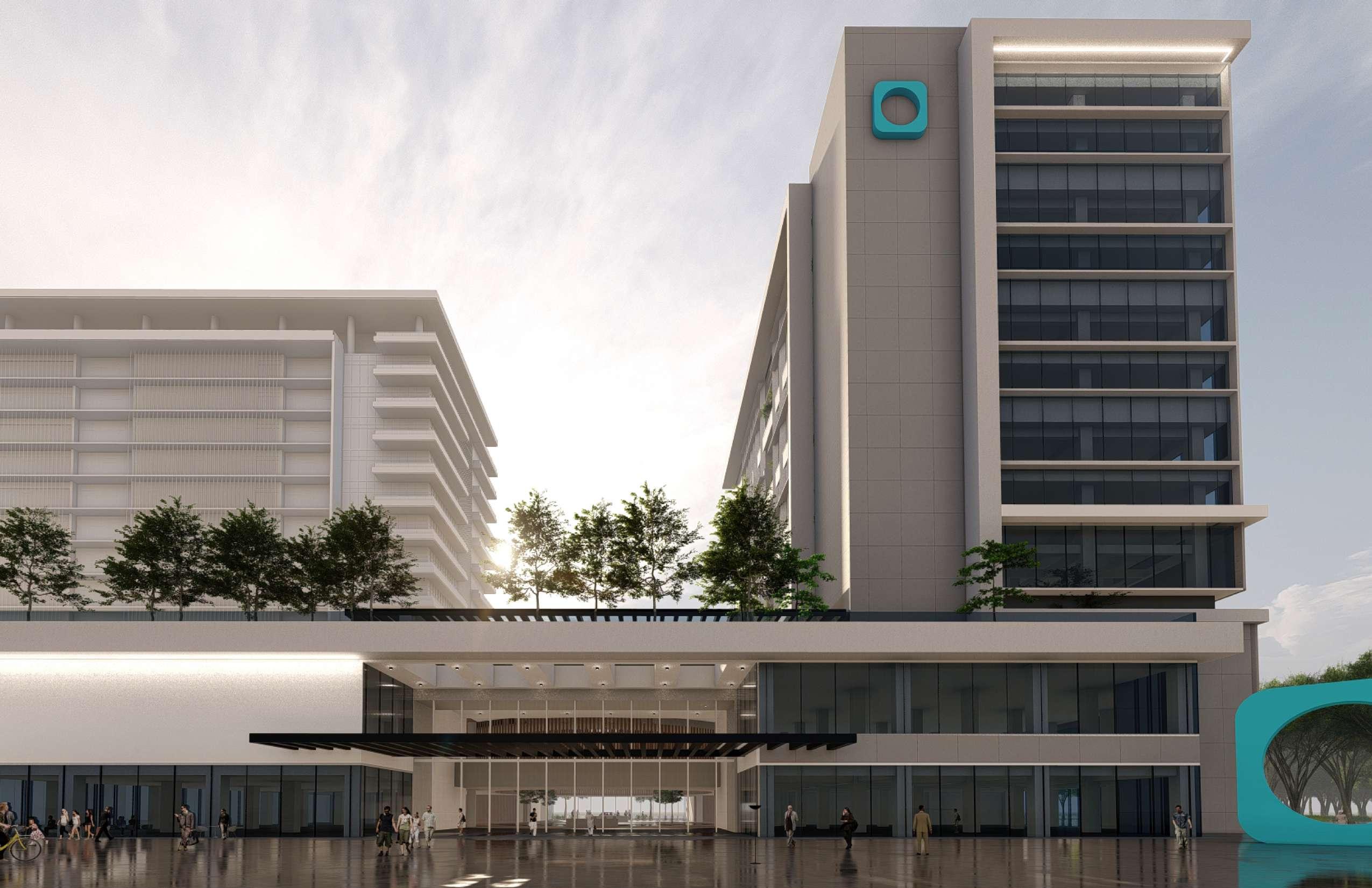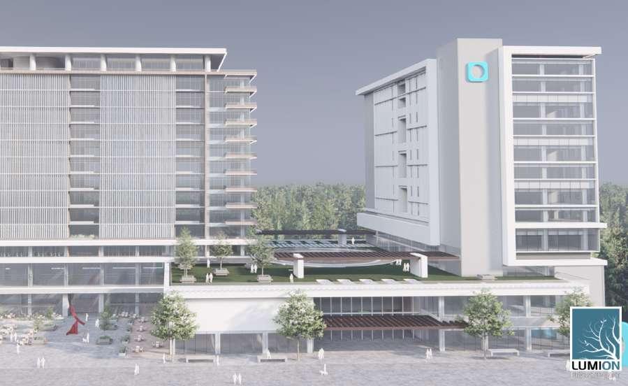 El proyecto consistío en un masterplan que buscaba darle servicios a los residentes de Villa Nueva, un centro comericial, un call center, universidad, centro comunitario y y el hospital con un edificio de clinicas. Es un hospital de 350 camas . Está conformado por 5 niveles de encamamiento normal, que se dividen en habitaciones de 2 personas y habitaciones de 5 personas, los cuales son para maternidad, pediatría, y adultos. También consta con 3 niveles de encamamiento de cuidado intensivo, para maternidad, neonatal, pediatría y adultos.