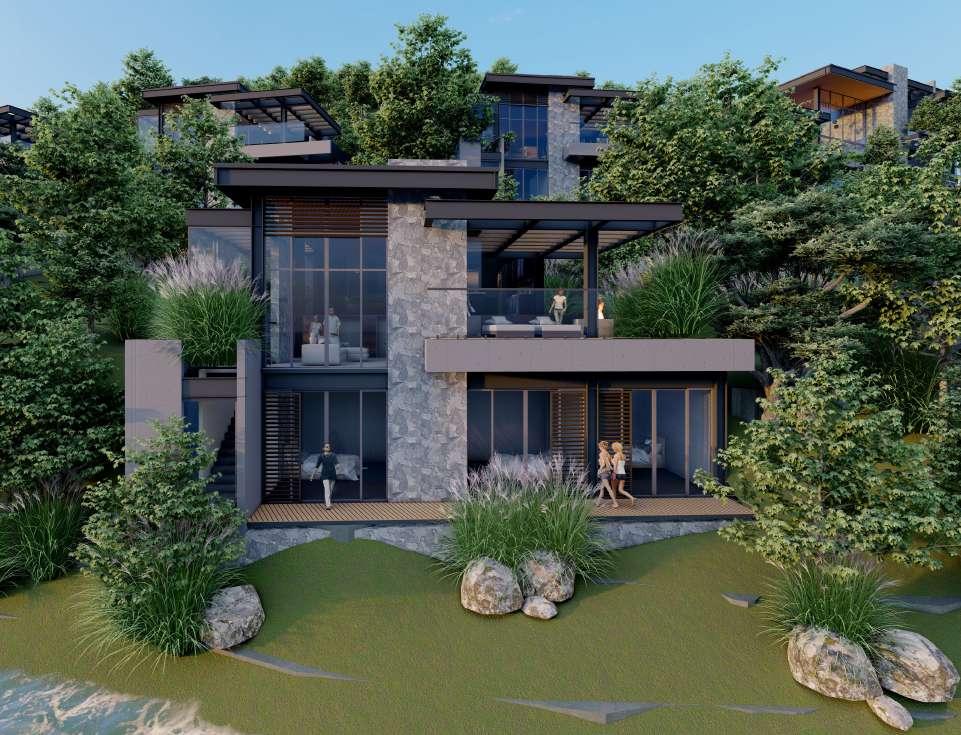Las villas fueron diseñadas aprovechando la topografía del terreno para maximizar el contacto con la naturaleza y las vistas hacia el lago. Se ubicaron plataformas para reducir la cantidad de escalones en el diseño, creando ambientes en cada una de las plataformas que dan la posibilidad de mantener los ambientes separados o ampliarlos hacía el exterior o viceversa.