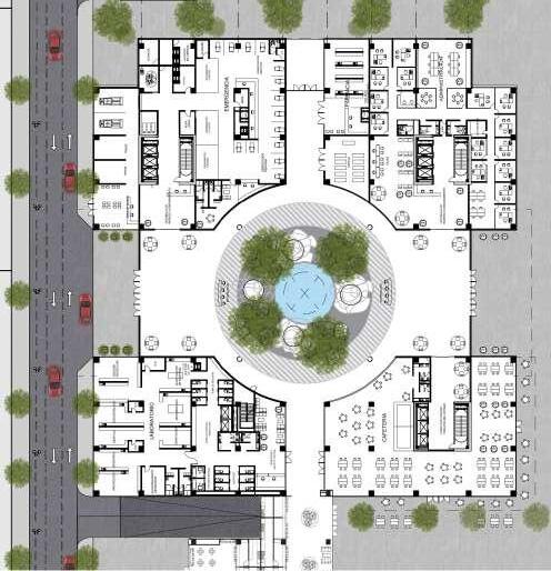 El hospital debía estar ubicado en un punto que le permitiera tener conectividad con las vias principales y un ingreso para las ambulacias y automoviles de manera fácil.