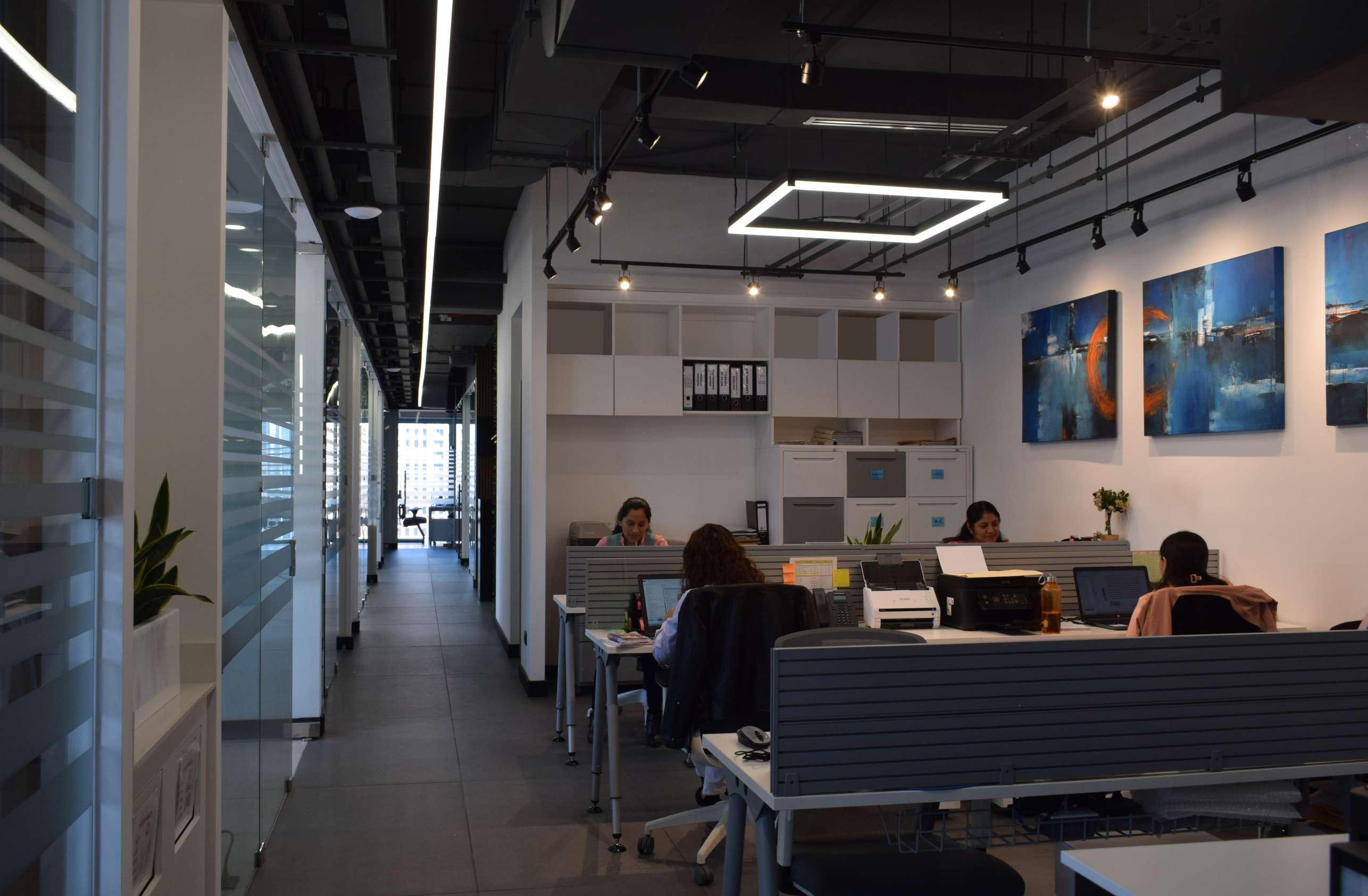 Se hizo la distribución manteniendo áreas de recepción, reuniones y las oficinas de los socios hacia un lado. Por el otro lado se mantuvo el área operativa áreas de asistencia y oficinas de los abogados. Dos hubs de servicio que atienden los dos sectores.