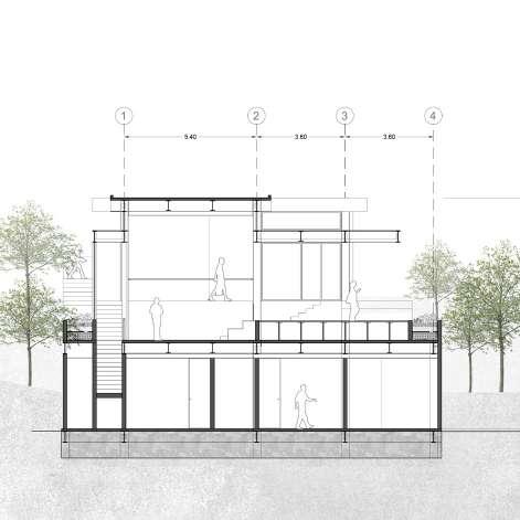 El hotel se trabajo a través del uso de plataformas de manera que se fue adaptando a la montaña que ofrecia el terreno, esto permitio generar gran riqueza espacial en varias áreas y la conexión con las vistas y la naturaleza en todo momento. Se puede ver las variaciones en las plantas para poder adaptar las áreas al terreno. Y generar la conectividad desde el punto de llegada o el estacionamiento hasta el lago.