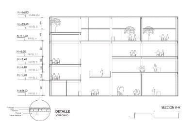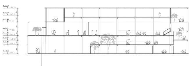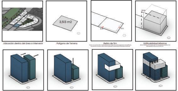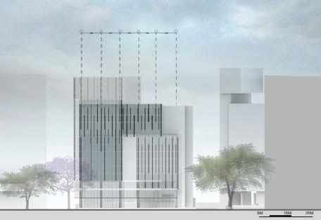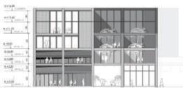 This project was designed as a part of a District Masterplan. This building has seven teen floors.The first three consist of commerce. The rest of the program is offices in the tallest tower and a Masters Program School on the short tower, the volume that is helding the two towers together is four floors of coworking that serve both the offices and the school as common spaces for groupwork and studying.This four floors were meant to create a networking area between the people doing masters degree´s and entreprenours in the coworking space. Coworking floor