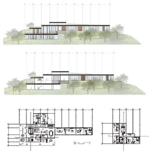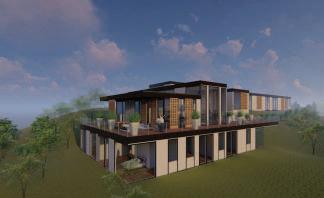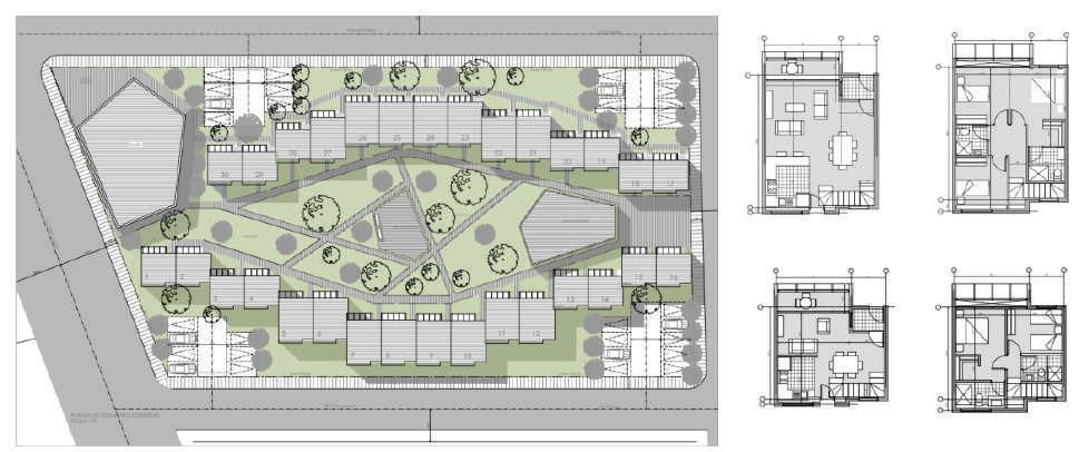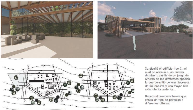 For this project the main challenge was on how to deal with the terrain unevenness. Axes were created on the masterplan leading towards the best views and the most benefi cial climate conditions, the axes shaped the buildings. Building type C was the only one solved for the project and the concept was to play with the different altitudes of the spaces, dictated by the terrain in order to create the right amount of light and wind openings, and to build a much better relatiosnhip of inside-outside space.