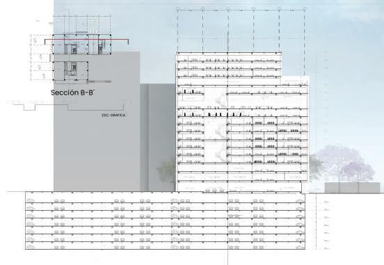 The main purpose of this building was to create a bridge btween two streets in order to reanimate a part of the city. There was a lot of focus in the climate treatment of the facade for which solcar analysis and other simulations were made.The program of the building included commerce, restaurants, and apartaments at the top level.