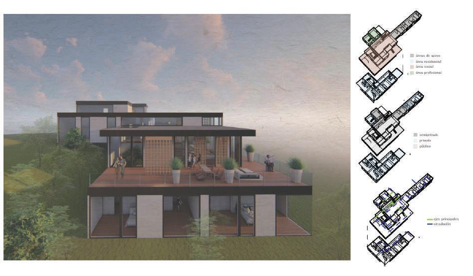 For this project the main objective was to take advantage of the beautiful volcano views that the terrain offered meanwhile creating interesting spaces harnessing of the unevenness of the land. The house was designed separating the residential area, the working area and the support areas such as the kitchen, cleaning,and other service areas etc.