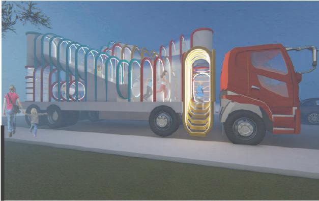 This design excersise consisted of think ing about a use that a mobile structure could have around a city. I created a playground that parked in different parts of the city everyday allowing kids to play and use it whichever way they wanted to. The design was built from a tubular metal structure that allowed several activities to happen inside.