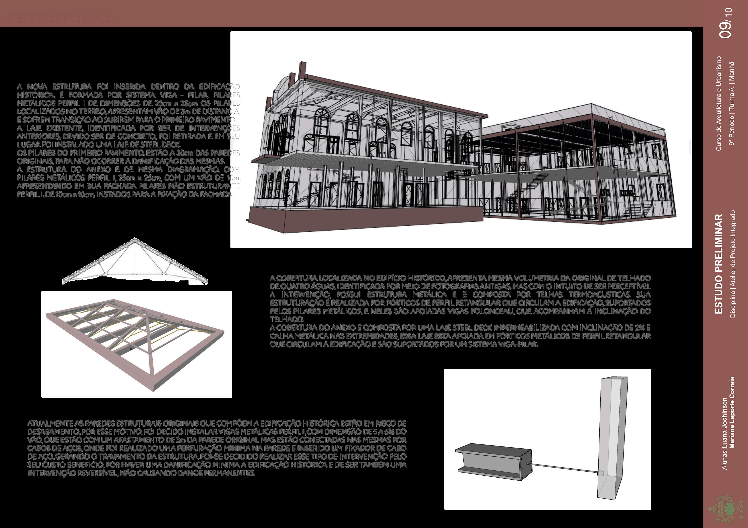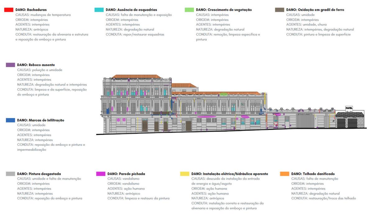 Atualmente as paredes estruturais originais que compõem a edificação histórica estão em risco de desabamento Por esse motivo, foram instaladas vigas metálicas perfil I, com um afastamento de 3 cm da parede original, que são conectadas as paredes por cabos de aço gerando o travamento da estrutura. Este sistema foi o escolhido pois, além de sua eficiência e custo benefício, para a sua realização é necessária uma perfuração mínima na parede original, evitando grandes danificações no patrimônio e sendo uma intervenção reversível, não causando danos permanentes.