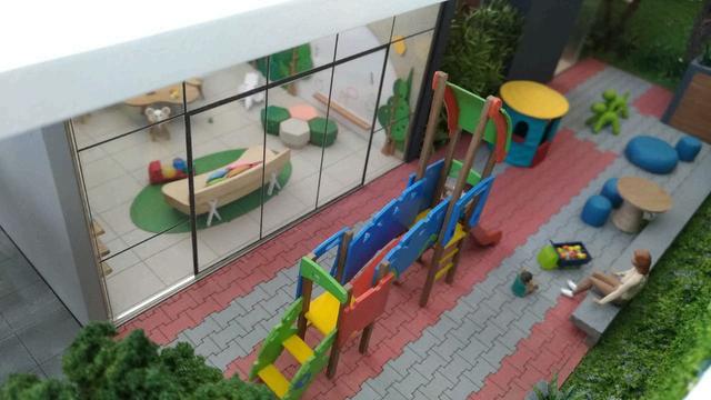 Composto por 22 pavimentos, o térreo abriga uma galeria comercial, uma praça pública e a área residencial. O programa possui uma ampla área de lazer exclusiva para os moradores, compreendendo uma piscina coberta, academia, salão de festas, churrasqueira, terraço, parquinho e brinquedoteca. Os demais pavimentos alojam três apartamentos por andar, sendo dois de 90m² compostos por uma suíte, um quarto e uma sacada, e um de 120m², que apresenta uma suíte, dois quartos, uma sacada e uma churrasqueira privativa.