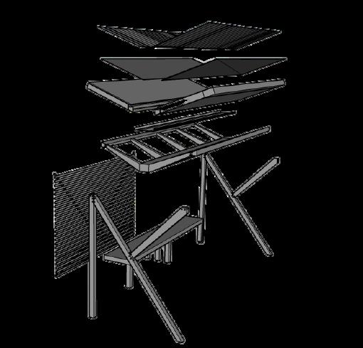 A madeira, como material escolhido para o projeto, tem como finalidade trazer leveza á estética do ponto de ônibus e também incorporar a natureza ao espaço.