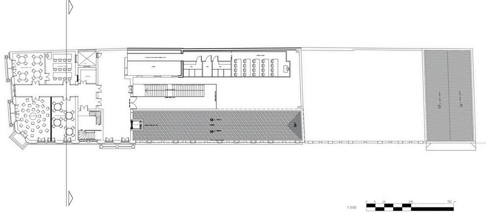 aparência original do exterior e preserva o caráter histórico do interior, incluindo suas características originais. Essa residência proposta teria a capacidade de abrigar até 20 estudantes e ofereceria uma variedade de comodidades, como uma sala de jogos, espaço de estudo, academia e cozinha compartilhada. Além disso, o anexo do edifício seria designado para fins administrativos. Dado ao amplo espaço disponível, também optamos pela criação de um restaurante, proporcionando um local aberto ao público.