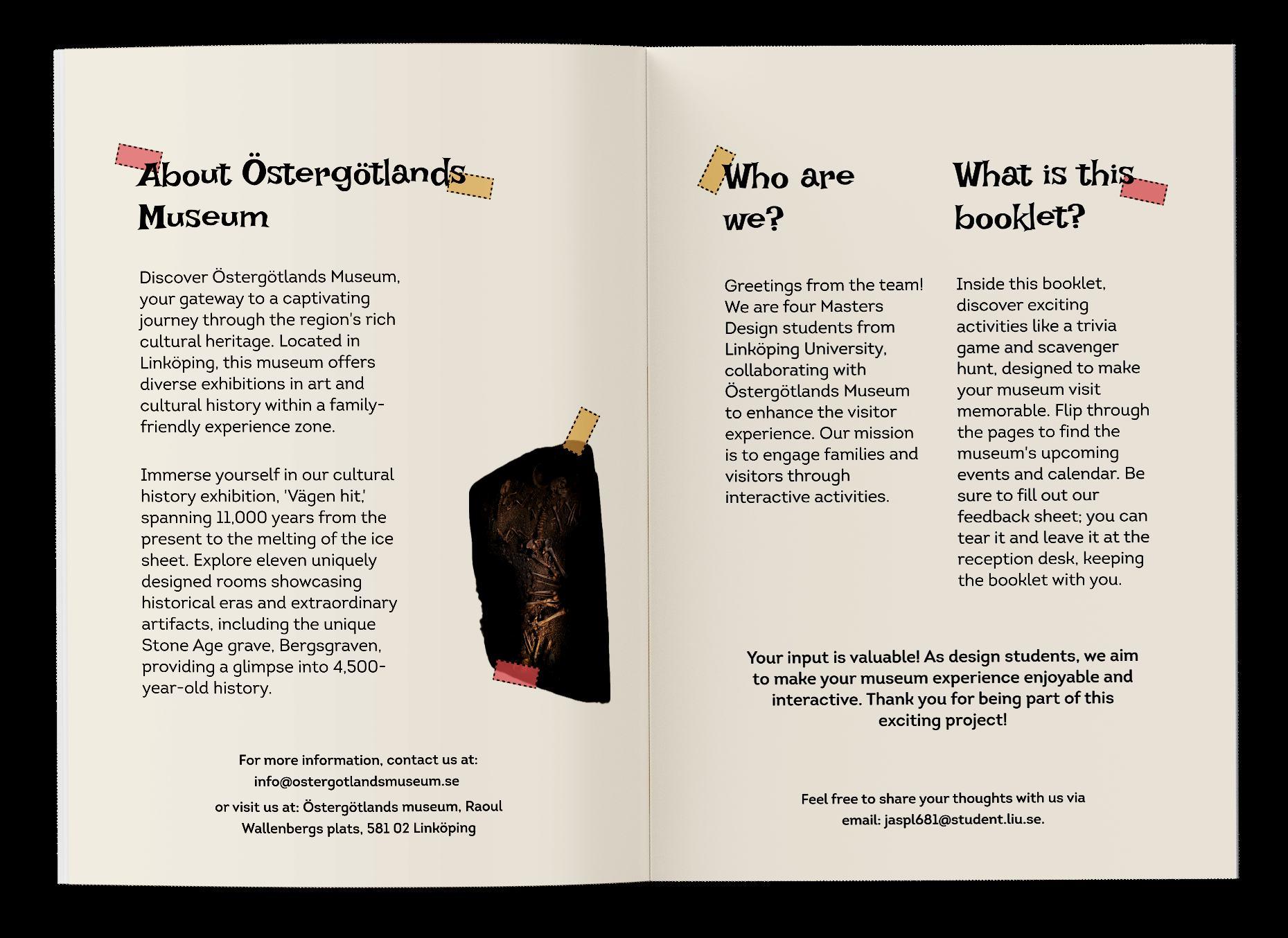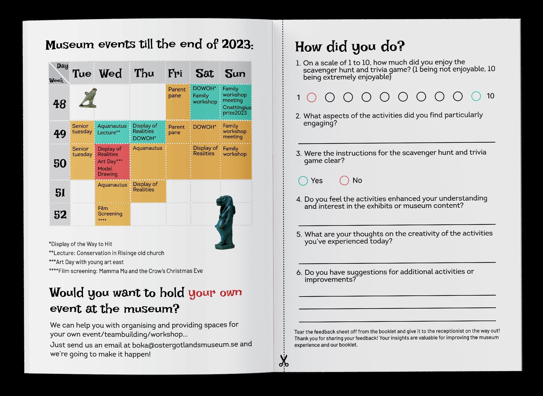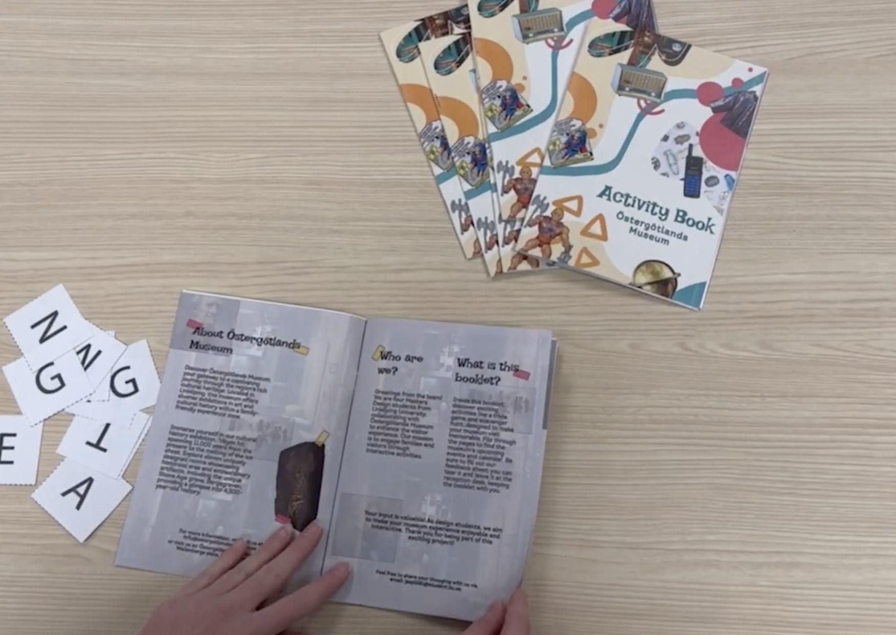 Physical booklet with activities for families with small kids during their visit to Östergötlands Museum