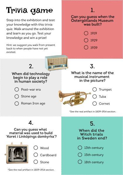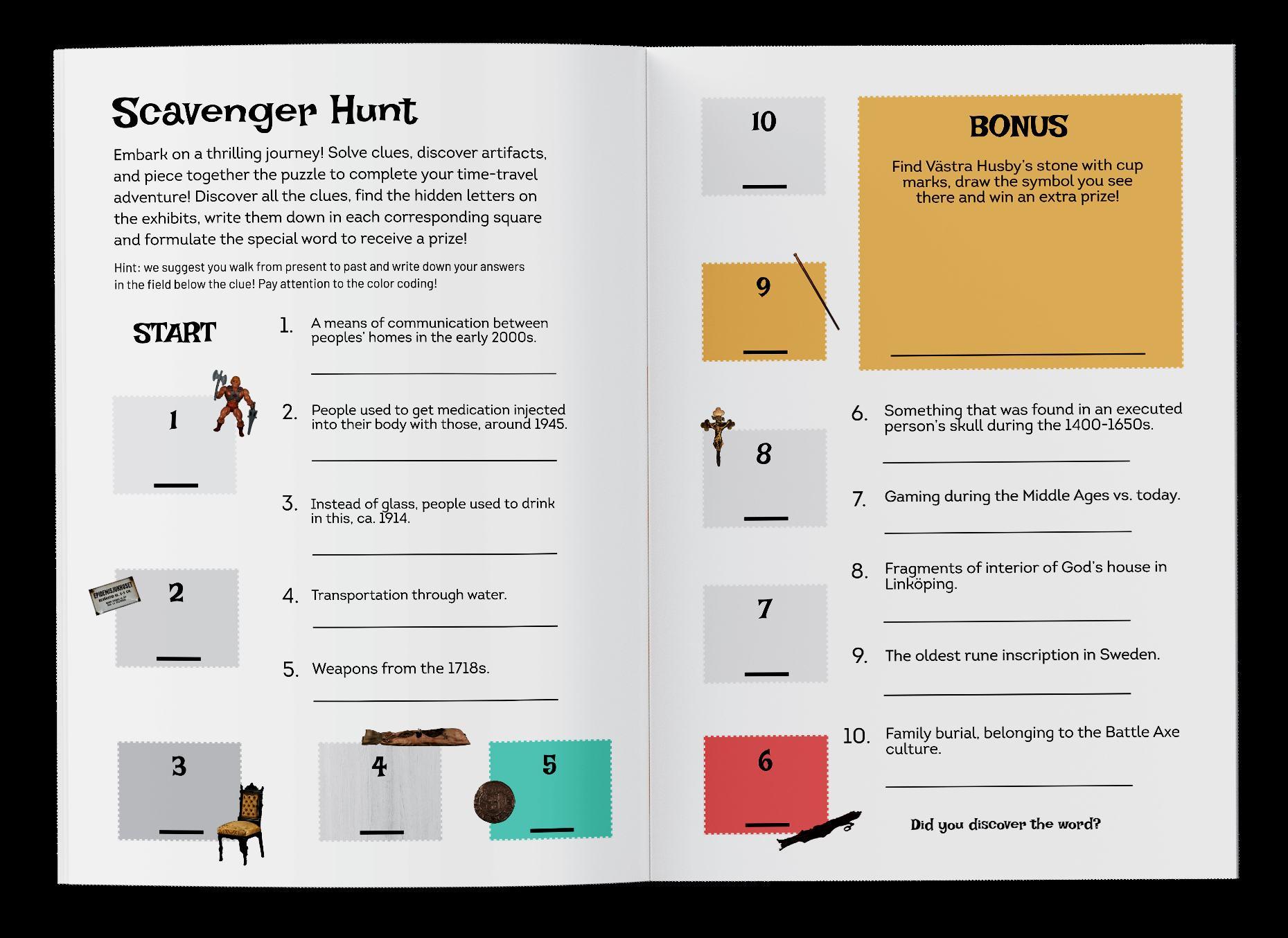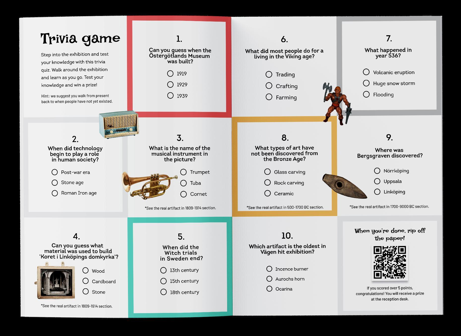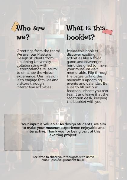Physical booklet with activities for families with small kids during their visit to Östergötlands Museum