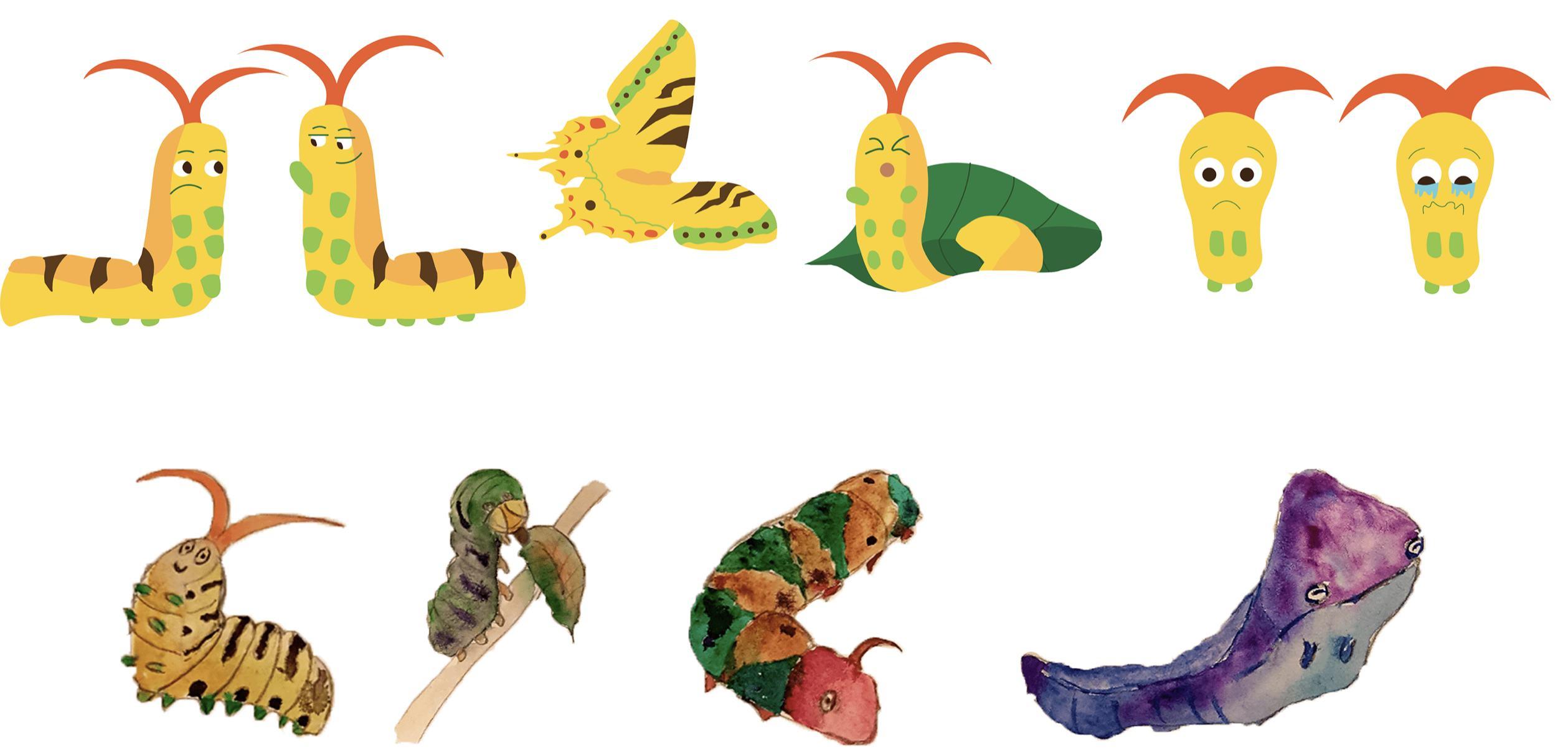 The character was inspired by a real caterpillar species and before that I had experimented with different looks of it.