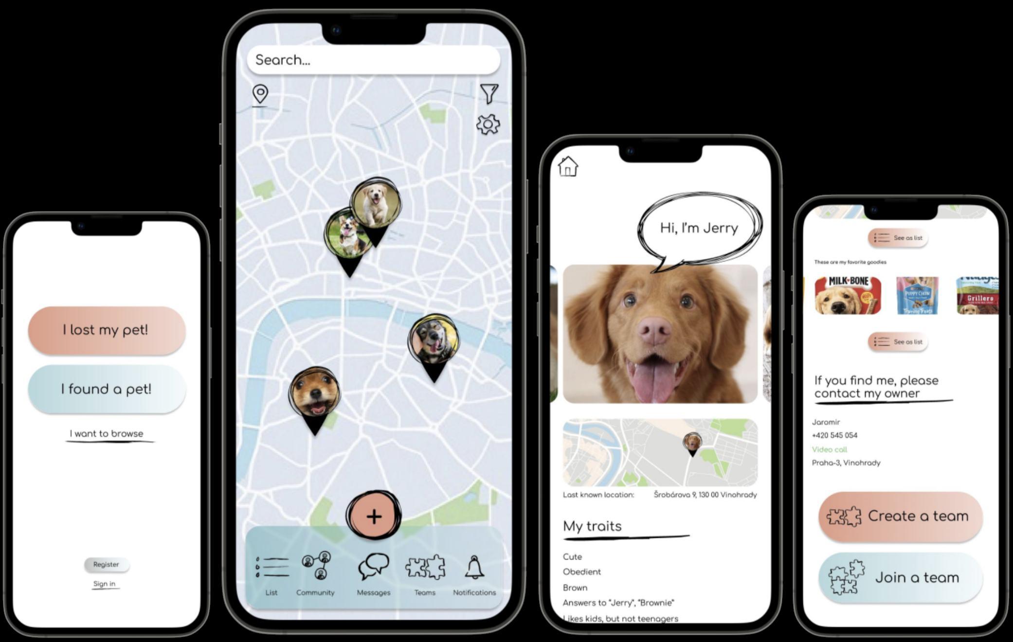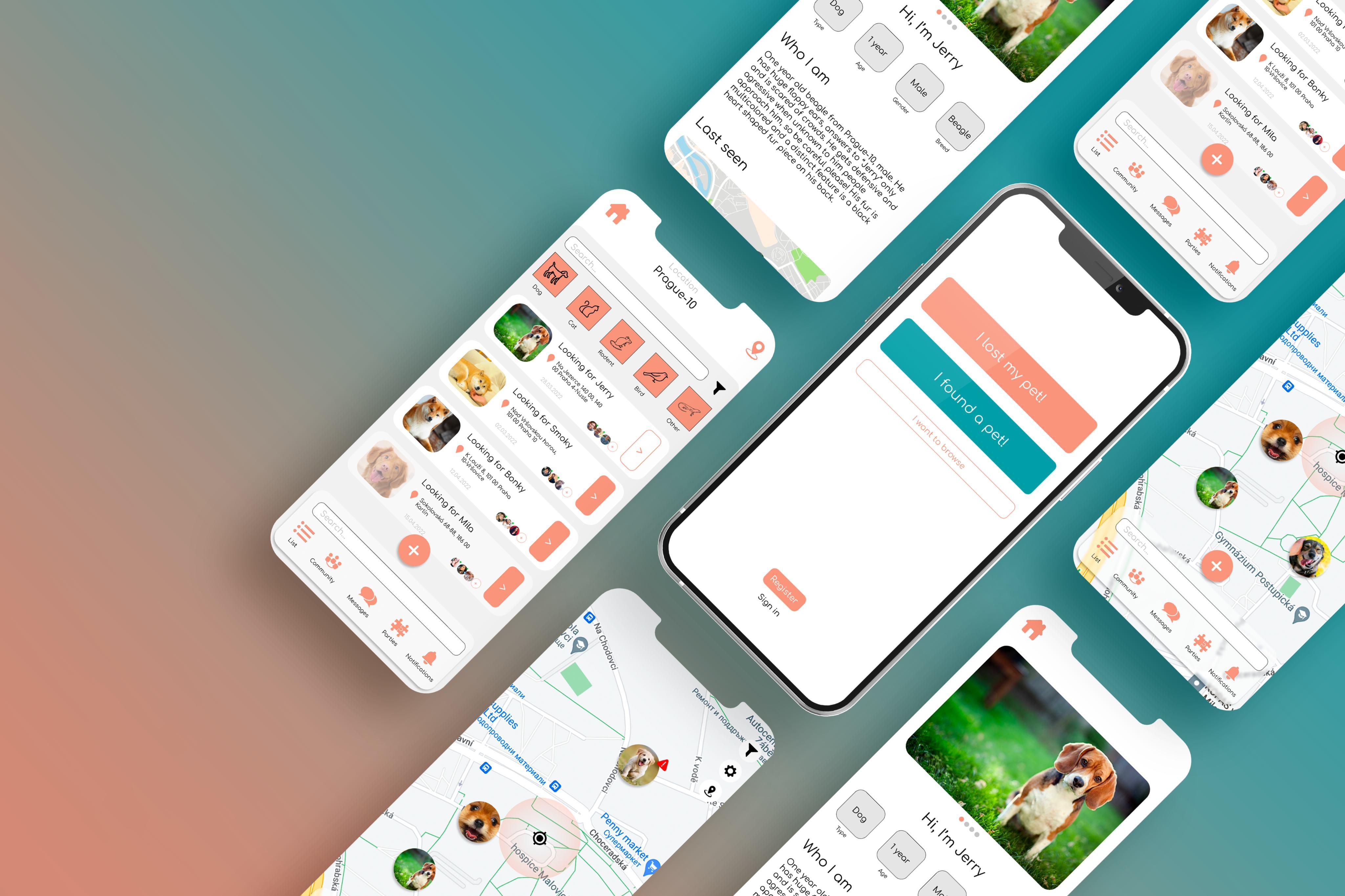Unlike other similar apps, Petective is also used by people who don’t own pets, but would like to offer their help in finding a missing pet. Orange indicates the owner losing their pet, also in the app, while the blue represents the finder and the shelters. Users earn points when working in teams and can purchase merchandise with those points from the in-app store. The following personas were kept in mind while designing the app: