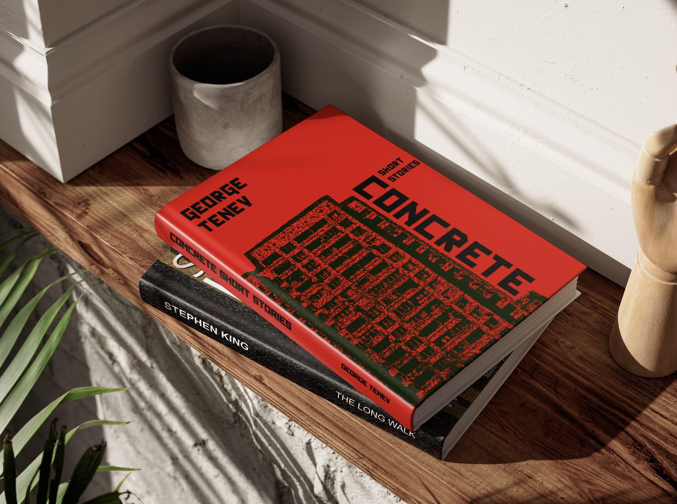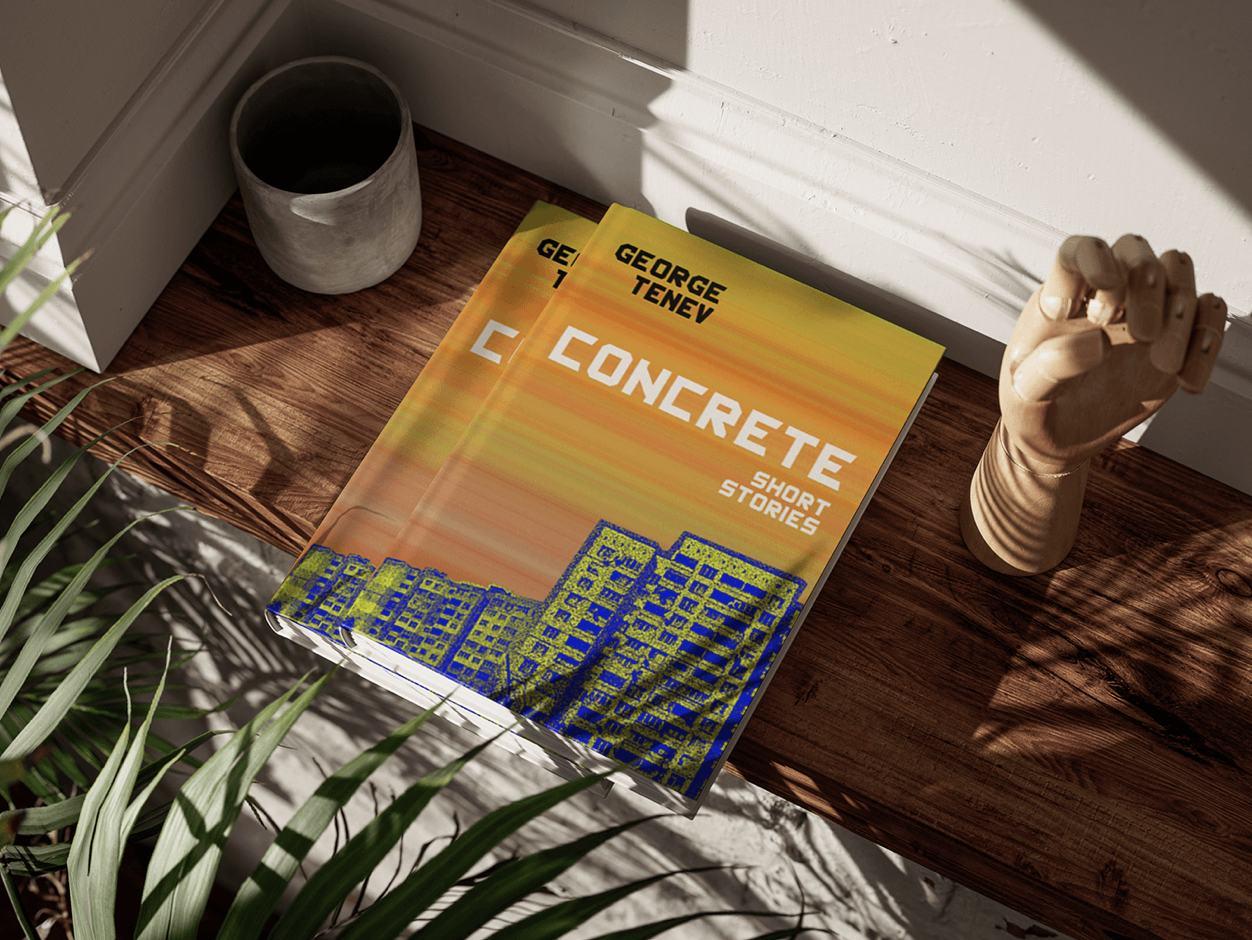 In 'Concrete Short Stories', the Bulgarian author delves deep into the stark reality of life within Bulgaria's iconic concrete buildings, a reflection of the communistic era. The cover pays homage to this unique narrative, featuring the panel blocks, a defined part of the country's history. The strategic use of a typeface reminiscent of Soviet propaganda posters adds historical depth, while the rough visual effects on the block e ude authenticity. Below is a second version of the cover, more nostalgic approach in terms of color palette.