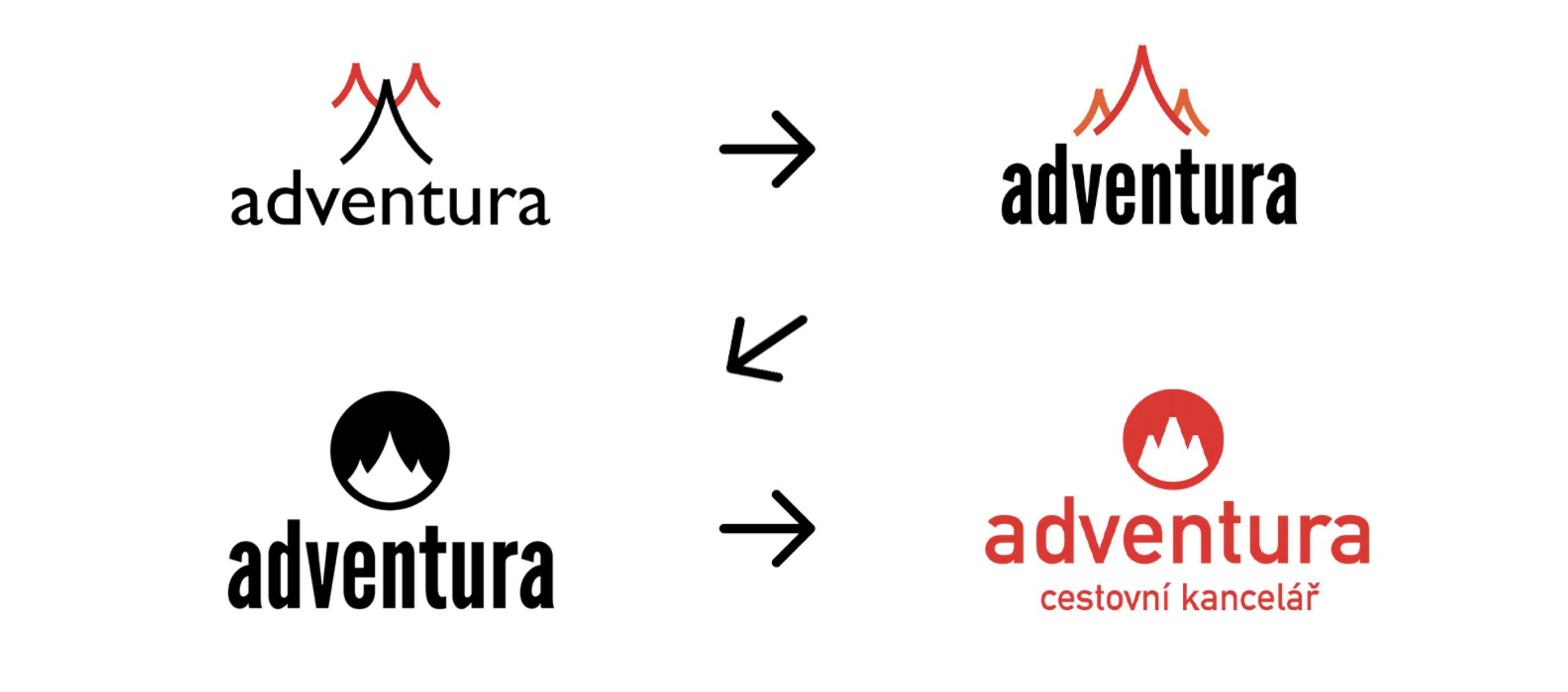 The evolution: what started out as an abstract bird to portray freedom of exploration turned into a fire. Since the fire also looked like a mountain at the time, I went with that concept instead. The fire didn’t seem to encapsulate the values as much as a mountain. From then it was only about refinement. The company had requested to have “cestovní kancelár” meaning travel agency in Czech in the logo.