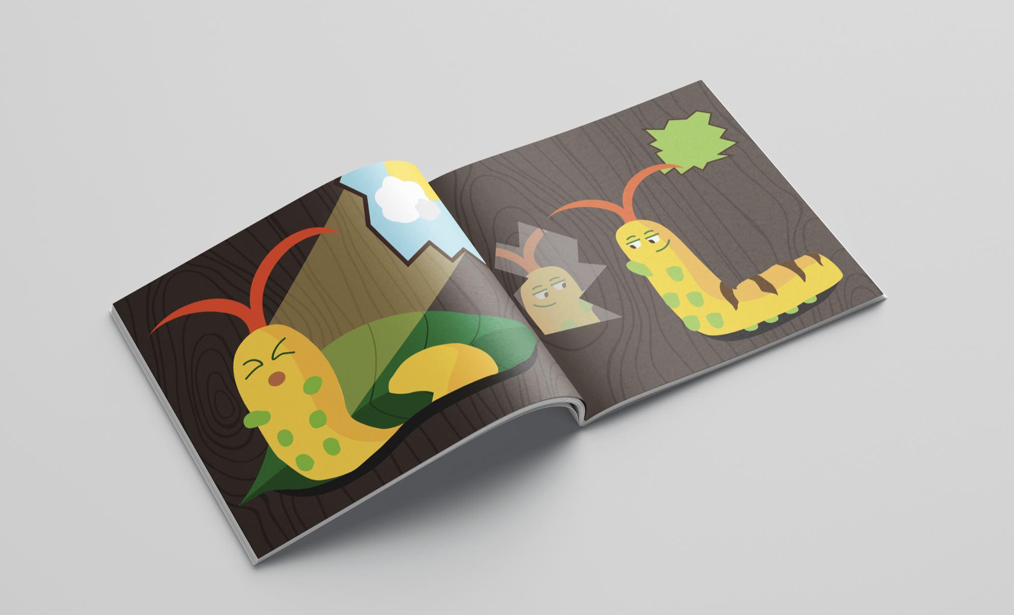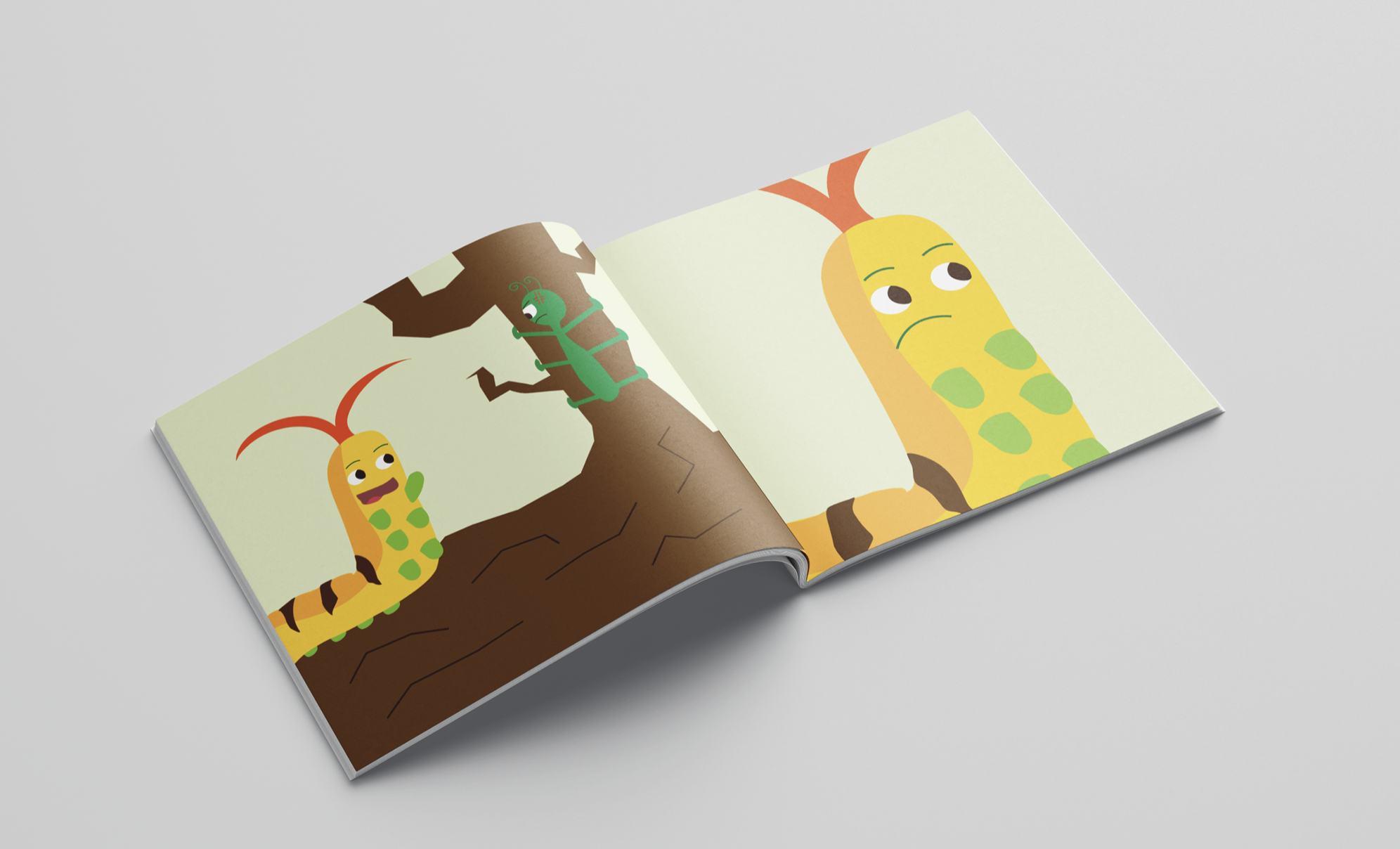 A silent story book authored by me, on the motive of "the ugly duckling". It tells the story of a caterpillar, which is ignored and despised by everyone, because of its ugly and boring appearance. However, once you hit rock bottom, the only way from there is up.