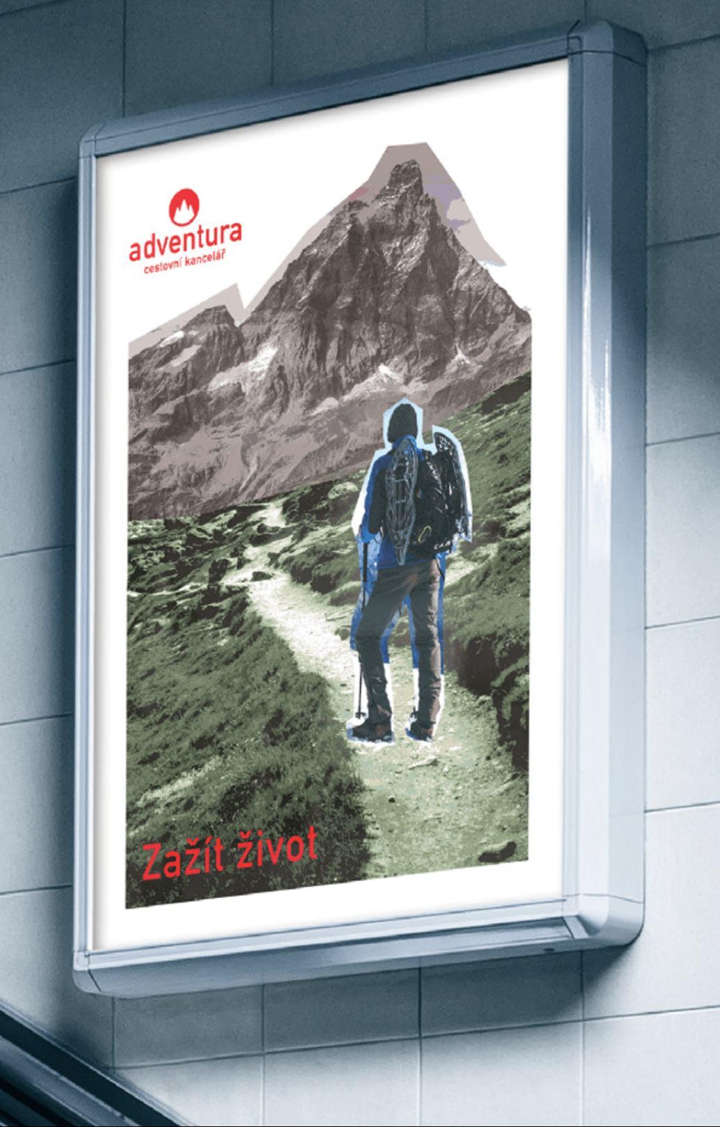 The rebranding includes new merch design, a series of posters, business cards, stationery. All of them take into account the nature of the travel agency - they specialize in hiking and climbing, therefore the mountains are a key point of the new identity. The logo itself is a mountain peak to communicate that with Adventura you can reach the top. The bold red color stands out among competitors and acts as a proof to the risky and daring adventures the customers experience.