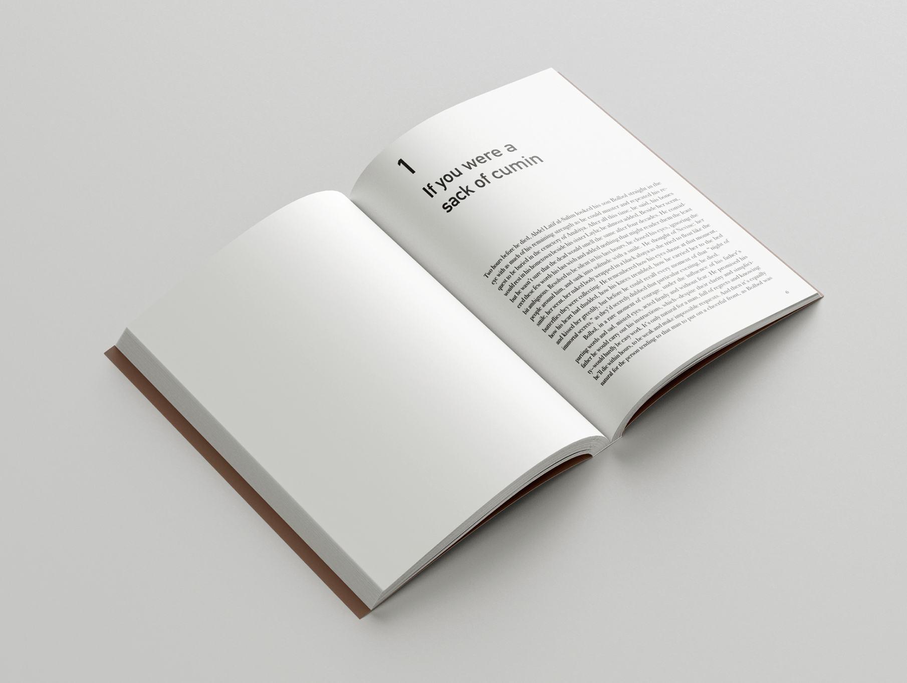 The story is set in the Middle East and it is full of despair, death but also hope. The main visuals are portraying the setting and cultural aspects of the book, the faceless man of the cover represents the deceased father, dressed in traditional clothes, the dusty and rusty look is contrasted by the typeface’s nature and color. The layout is standard, made to be easily readable.