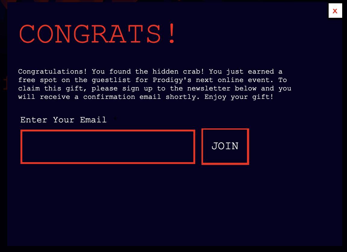 Hovering over a seemingly blank page reveals keywords, which upon clicking elaborate on the keyword and how it is connected to the album. There is also a hidden quest on the page for a big reward upon completion. That would be finding a hidden image of crab, representing the album cover, which grants the user a free meet and greet with the band members.