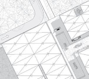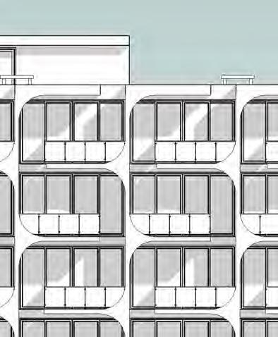 Circulation flows around these patios, ensuring both public and private movement is efficient and safe. On the north façade, orthogonal volumes highlight the main entrance, acting as architectural landmarks that guide visitors and can house key functions such as waiting areas or information points.
