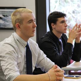 Senior leaders mentor freshmen through this peer leadership by reducing the fears and disconnectedness that many new freshmen feel when they enter a new environment. Each senior Peer Leader has a small group of freshmen they meet with weekly to help transition to life at Marianapolis. A continued mentorship will help the freshmen face their academic challenges and extracurricular lives. A broad perspective will be gained as students master thinking creatively and critically, collaborating with others, and communicating effectively.