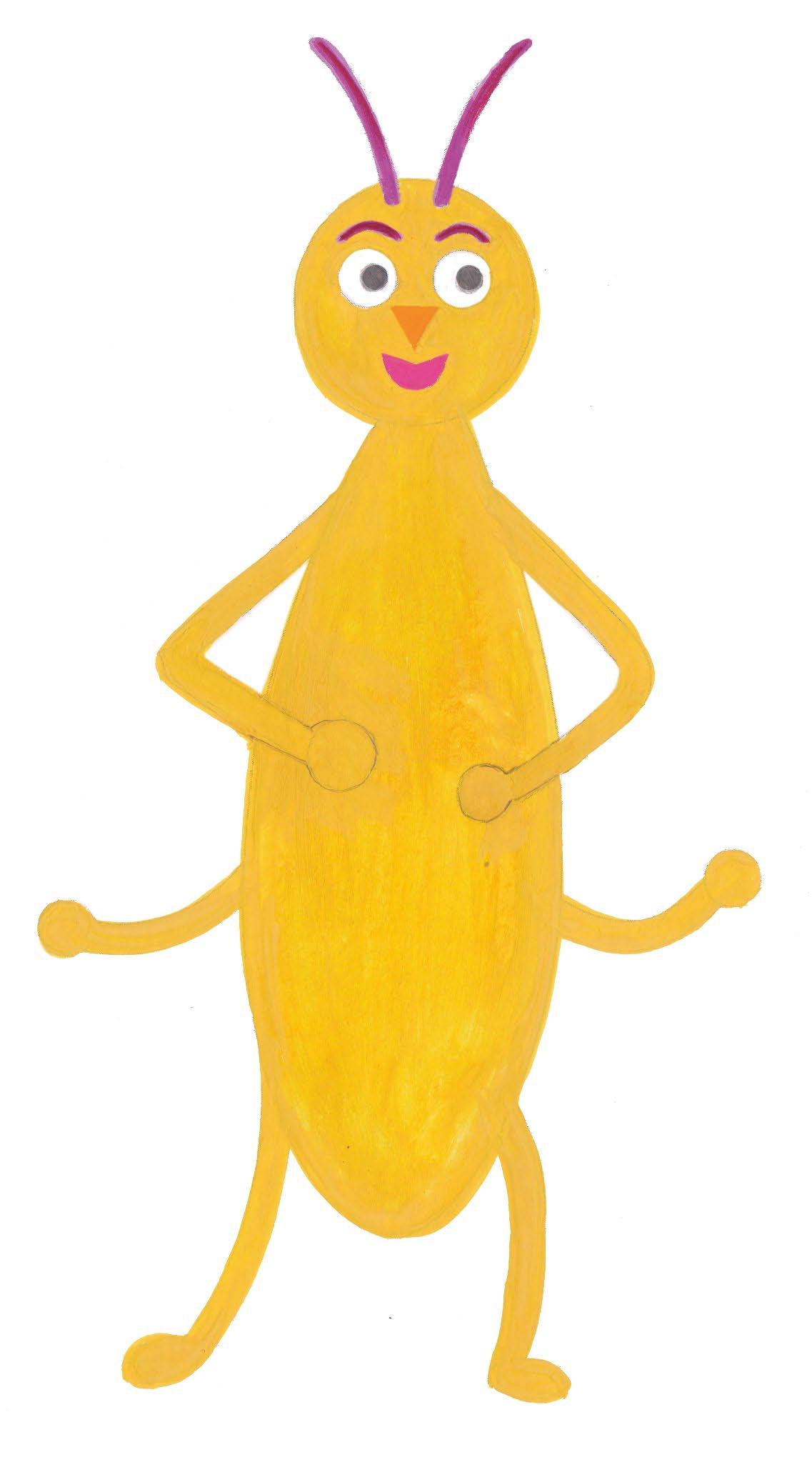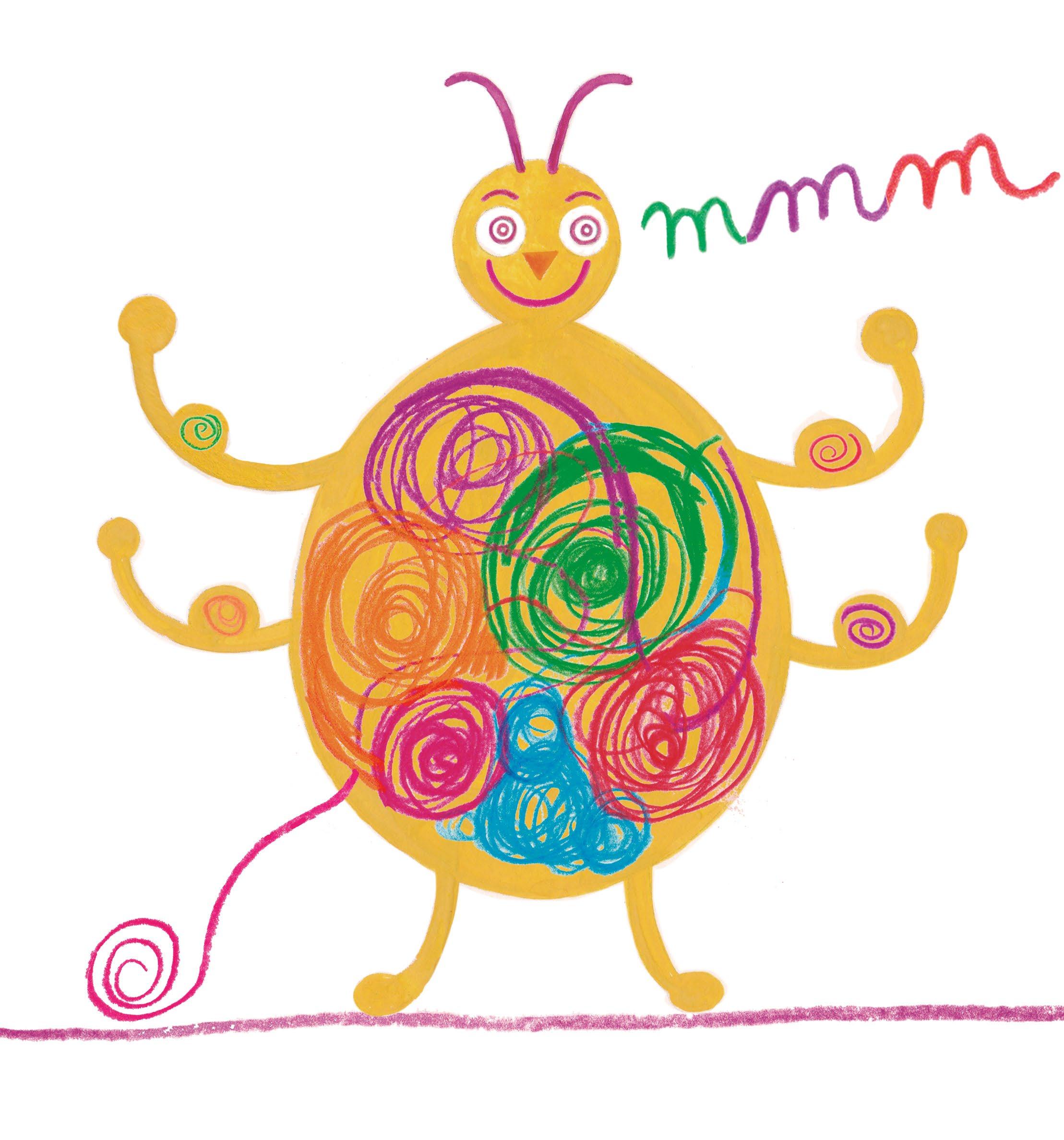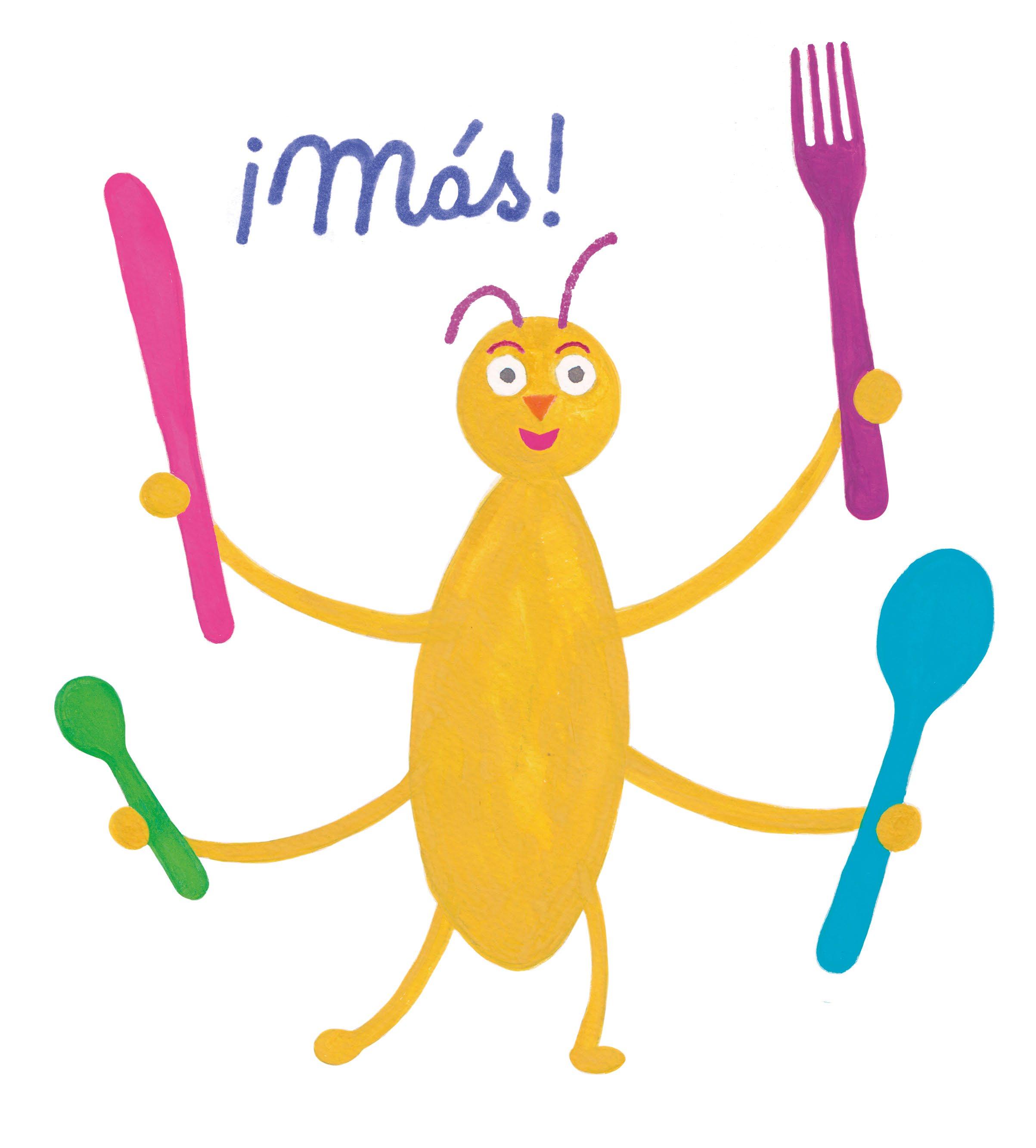 ¡Más! es un libro álbum pensado para las primeras infancias. Narra con imágenes la historia de un insecto que se encuentra a su paso con objetos -comestibles o no- y los devora. A partir de incorporar aquello que come, crece y se transforma.