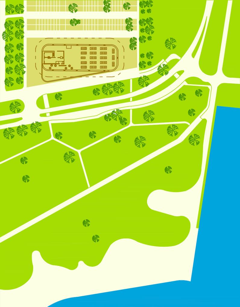 The building's adaptable design allows for future adjustments, ensuring its longevity and relevance. The spatial composition is guided by principles of transparency, flexibility, and a harmonious relationship withnature