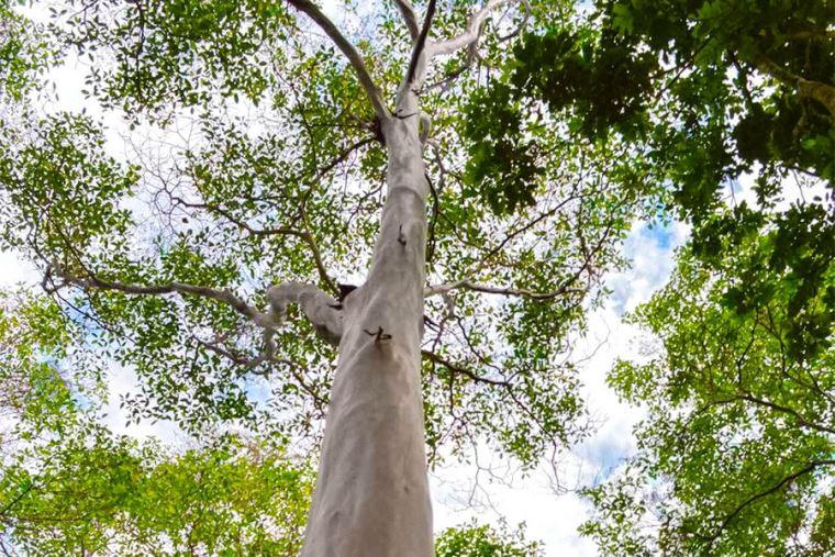 Este árbol se caracteriza por alcanzar una gran altura una vez ha logrado su madurez completa. Puede llegar a medir entre 40 y 50 metros de altura y es una especie de la clase perennifolia, es decir, que es bastante duradero. Fuste agrieta de color marrón claro rojiza, con capas externas que se desprenden en trozos alargados, y en el interior con capas rosado blanquecino.