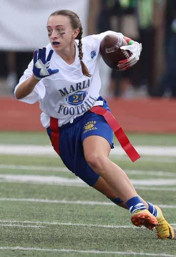 In the 42nd showdown between Marian and Regina, the Class of 2024 led the way with school spirit! Seniors donned their football jerseys and fi lled the hallways with music, leading underclassmen in cheers between classes during the week leading up to the big game. A resounding thank you to our coaches, parents, alumnae, and entire community who cheered on our Mustangs!