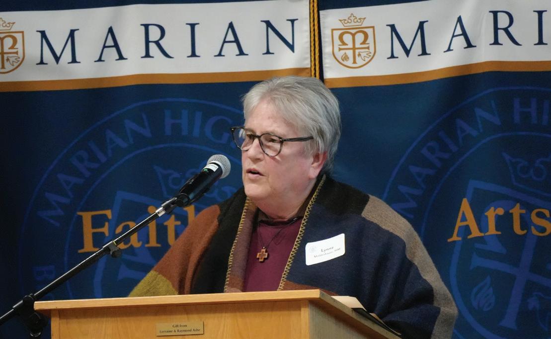 Draper ‘26 who reflected on her time at Marian. She spoke of how Marian has helped nurture her faith, how school athletics have helped shape her character, and how her academics have inspired her to pursue her aspirations. She also touched on the most meaningful aspects of her Marian experience including class retreats and the strong sense of sisterhood.