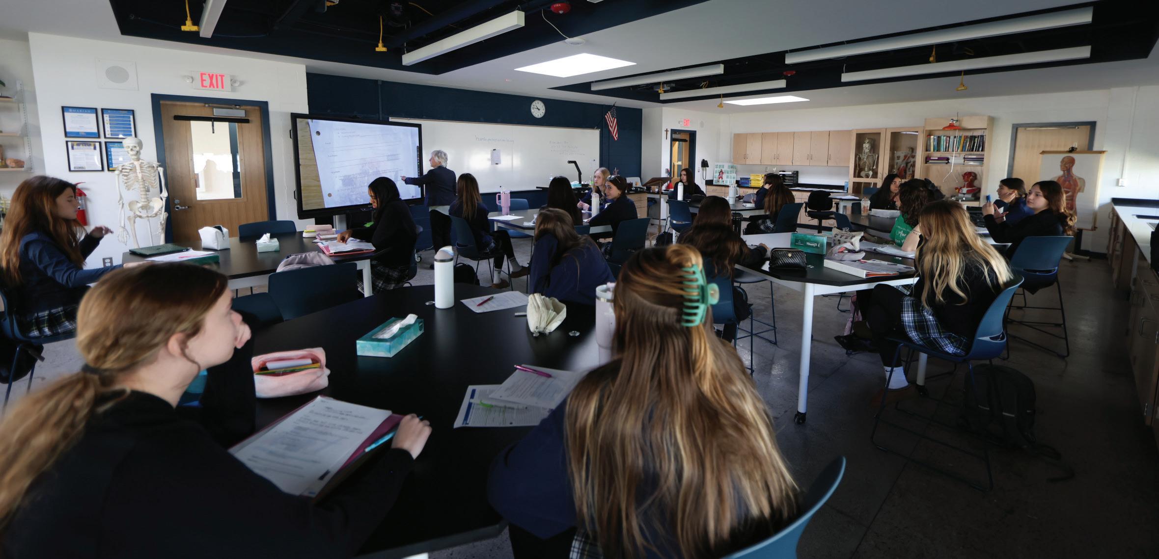 Marian’s new science wing features six state-of-the-art classrooms designed to make the learning process immersive and engaging, a vibrant makerspace where students can transform ideas into reality, and new windows and air conditioning that enhance comfort and learning. It’s all possible thanks to the lead gift from the Fisher family.