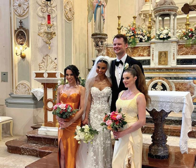 ♦ This past summer, Christine Montalbano ‘16 married Matt Schearer in Italy. Sisters Nicole Montalbano Yaldoo ‘14 and Lauren Montalbano ‘17 were by her side as were many Marian friends.