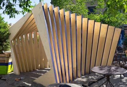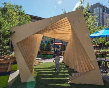 The incentive of this project is to increase green spaces to undeserved areas of Denver. With a three week deadline and budget, the city and County of Denver collaborated with CU Denver students to create Denver’s first pop-up park. Us students designed , fabricated and installed two entry gateways on the city block on 21st street. The parametric design contains twenty one ribs that rotate over a 30 degree axis and creates an optical illusion of shrinking tunnel because the outside square rotates at a different angle than the inside square. The public park will host concerts, festival , movie nights and provide quality outdoor space, and increase street-level activity between residents of downtown Denver