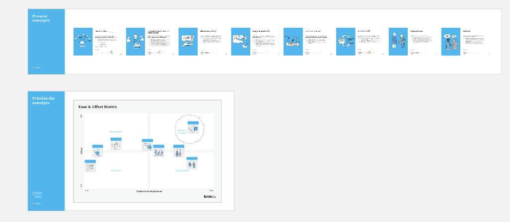 Together with the Elsevier team, we gathered in a workshop, and we looked into areas that we can improve in the journey and in the experience-related triggers, always keeping the main needs in mind. And eventually, we collaboratively agreed on 6 opportunity areas. Based on those, we created 8 concepts in another collaborative workshop.