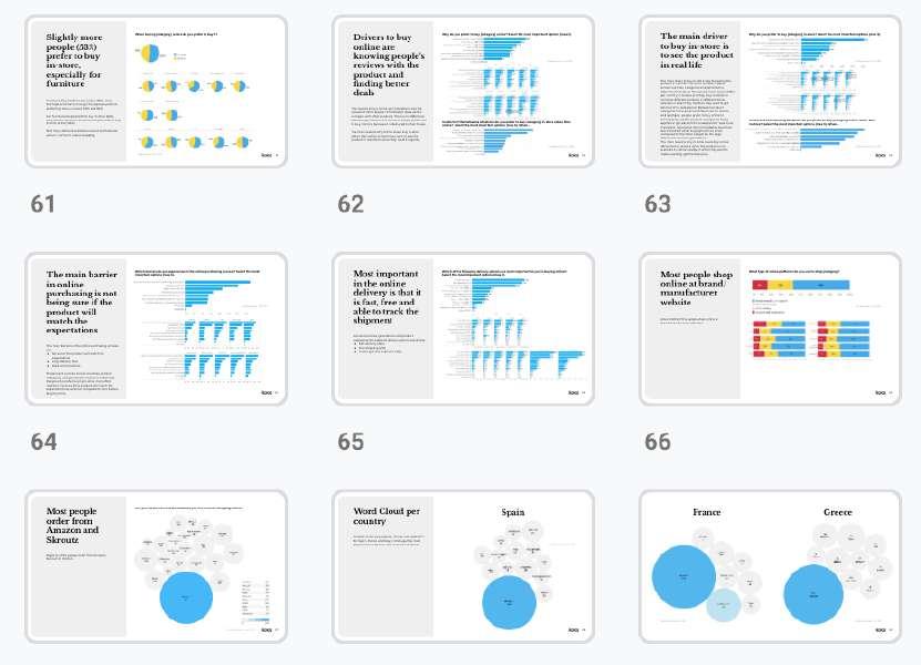 The final step of the research consisted in building a report of more than 100 pages. We accumulated a giant amount of data and thanks to Tableau- interactive data visualisation softwarewe were able to do data crunching and cross-analysis that allowed for more precise and detailed results. The final presentation was delivered to a large audience made of different stakeholders from a variety of departments and the report subsequently helped Wallapop build its communication and marketing strategy.