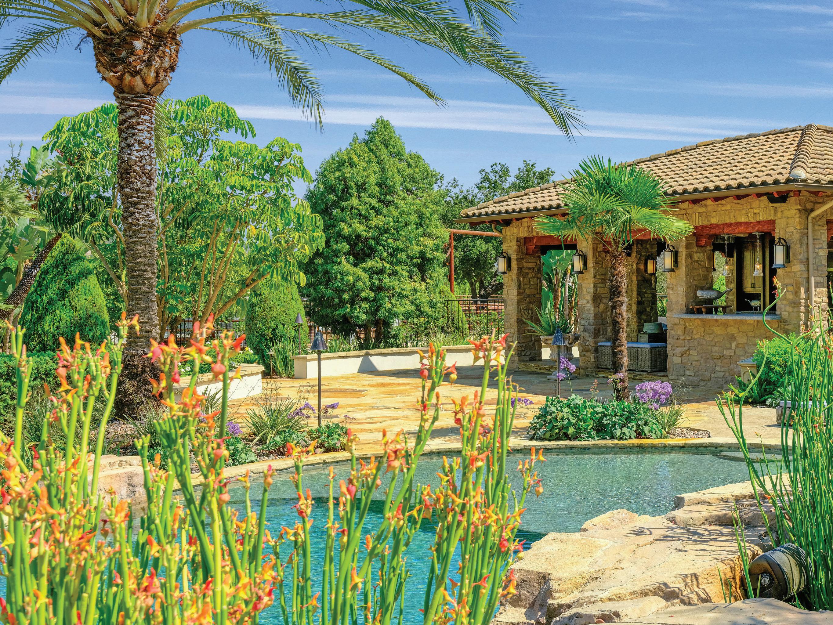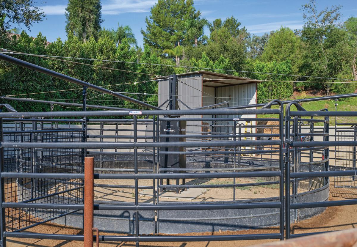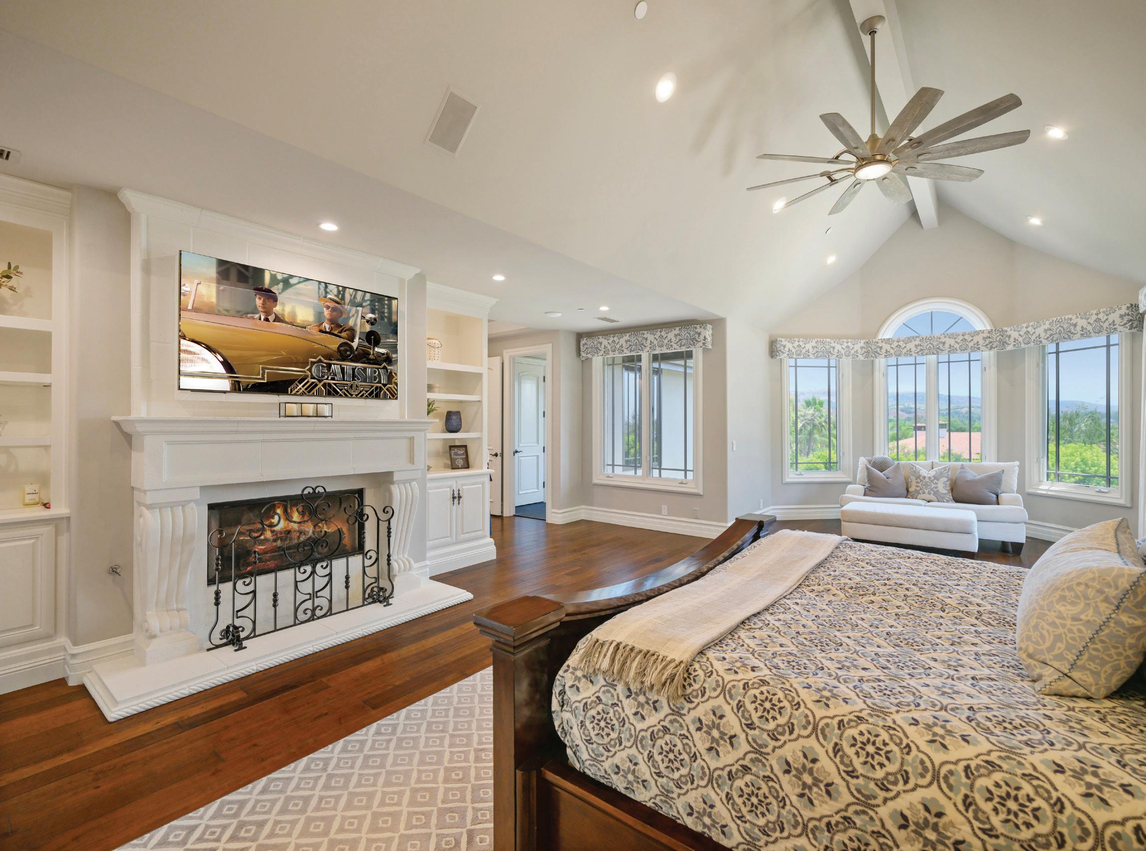 The backyard resort with its large pebble tec pool, waterfalls, spa and pool bath provides a wonderful setting for outdoor entertaining. The large open California loggia with a beautiful hand-detailed ceiling and wood cabinetry opens to a fireplace, built-in BBQ, flat screen TV with surround sound system and comfortable seating for entertaining. For the horse enthusiast, the new 10-stall barn has a tack room, large feed room, fans for ventilation and automatic drinking water for horses. This portion of the property is devoted to equestrian activities with a large arena for roping, cutting, jumping, polo competition, dressage and carriage driving. For special events, there is ample parking for cars and trailers. This is a dream come through for the equine lover or competition rider.
