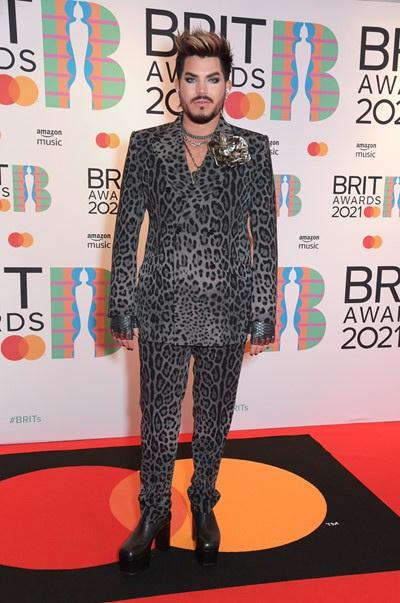 Sem esquecer dos homens da festa, é claro, Adam Lambert marcou presença com seu terno Animal Print cinza cheio de detalhes metalizados e sapato pretoalto