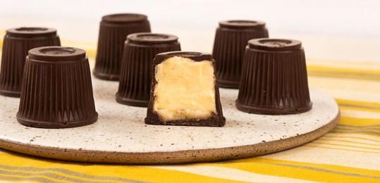 oleiteempó,iogurte,omaracujáeadoçante,eleveaofreezerporcincominutinhostambém. Depois coloque o mousse dentro da casquinha de chocolate na forminha e cobrir com o resto de chocolate Cincoderretido.minutosnofreezerefeito!