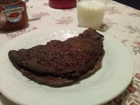 Misture o ovo, cacau, farinha, açúcar/mel, e coloque para esquentar dosdoisladosnafrigideira.