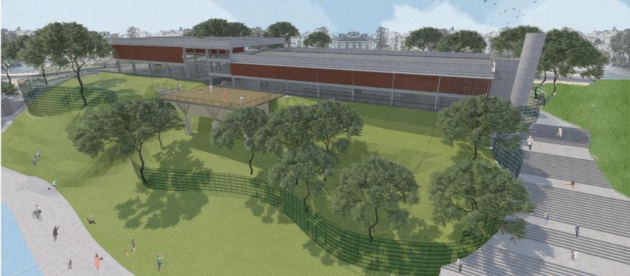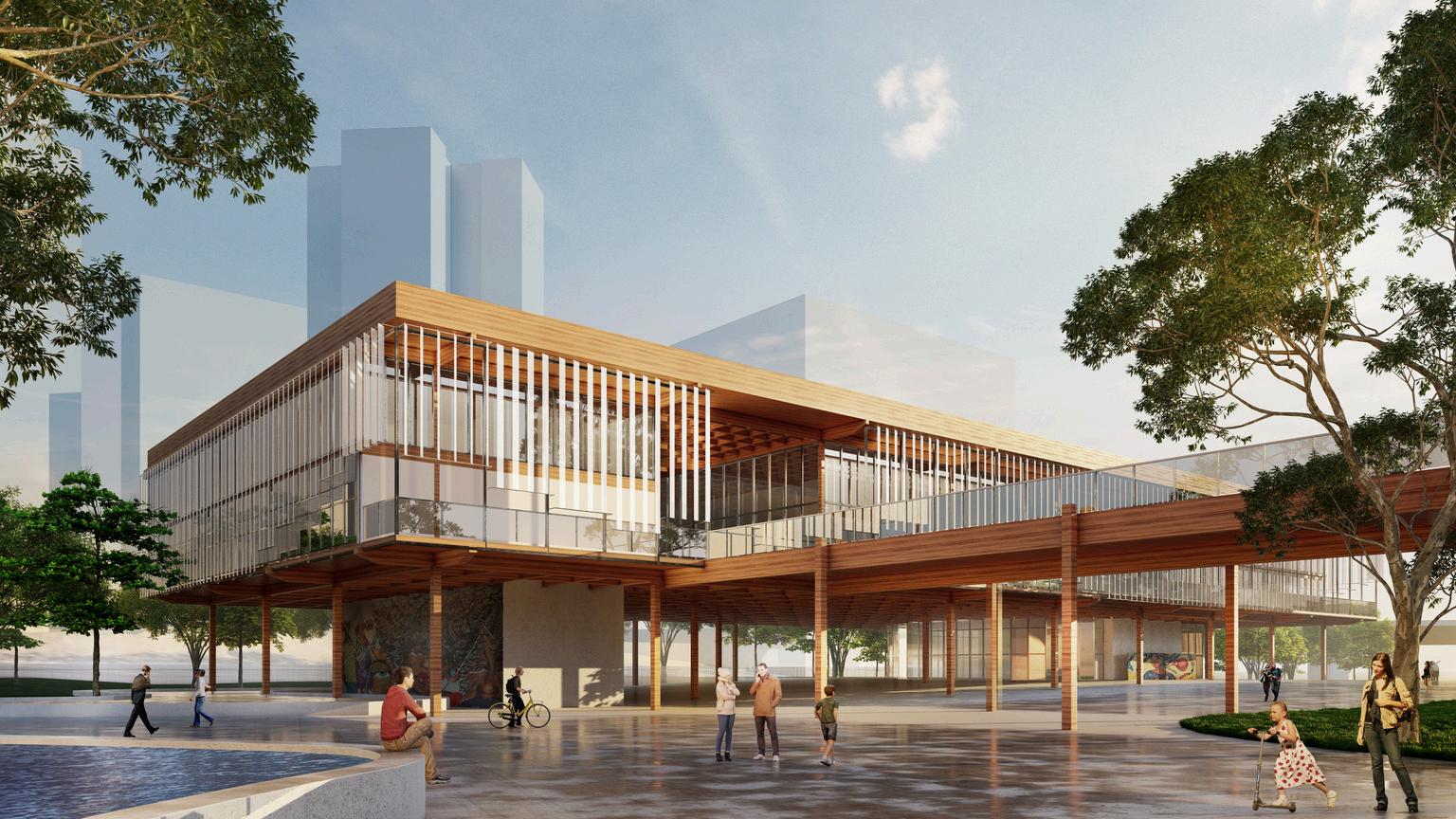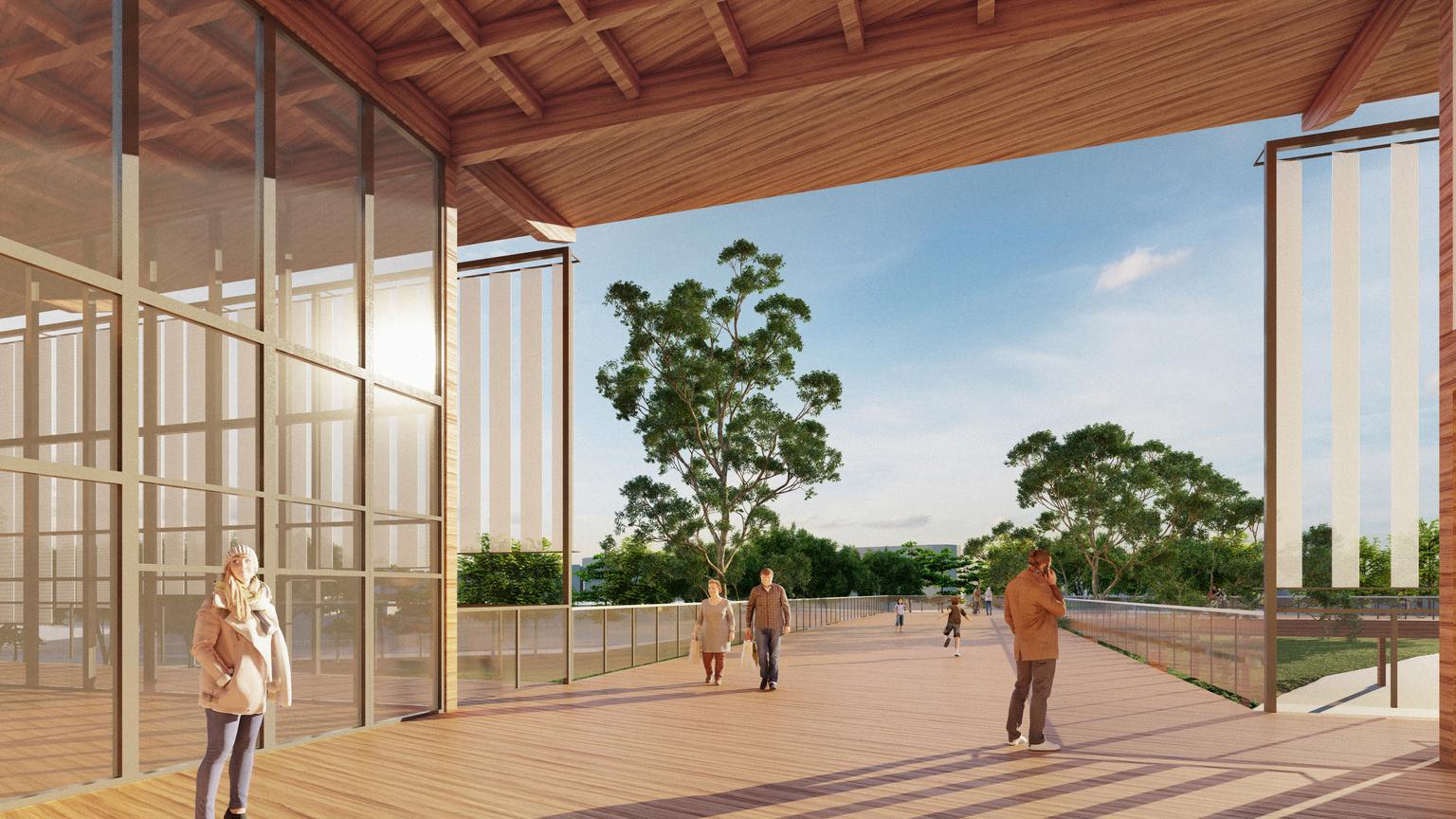 As edificações, que abrigarão os principais espaços culturais do programa, buscando se conectar entre si a partir de uma passarela, que interliga seus diferentes níveis.